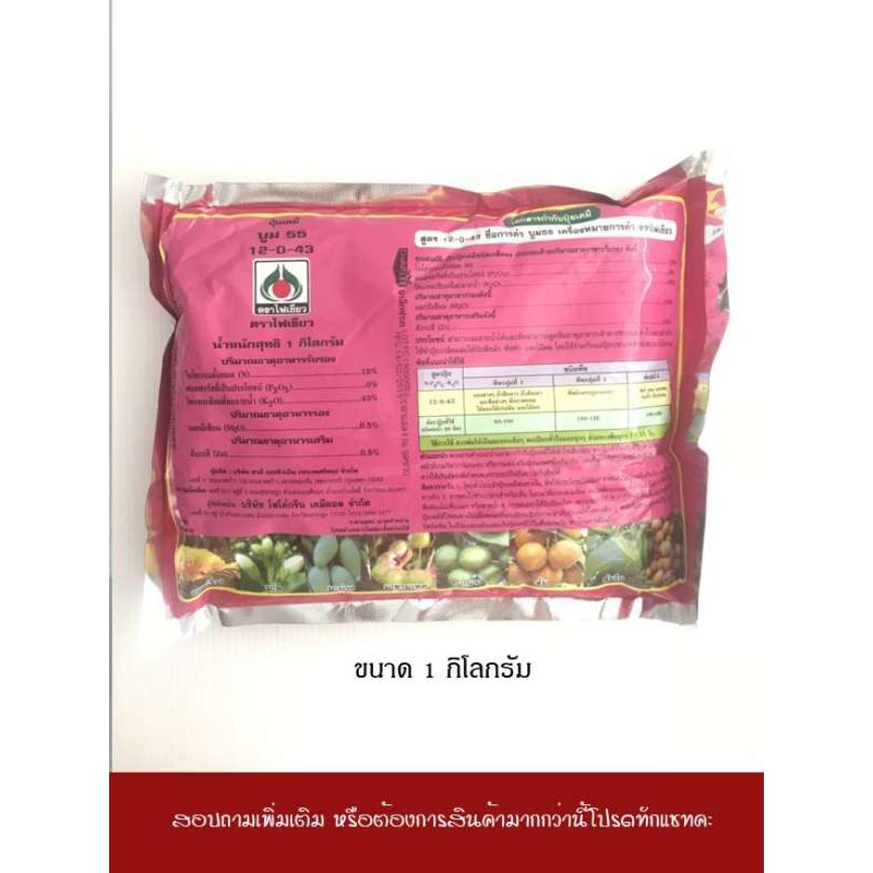 บูม 55 ปุ๋ยเกล็ด ปุ๋ยเคมี ( 12-0-43 ) ลมเบ่ง เร่งเต่ง เพิ่มแป้ง เพิ่มน้ำหนัก อาหารเสริม เช่น ข้าวโพด ( 1 กิโลกรัม )