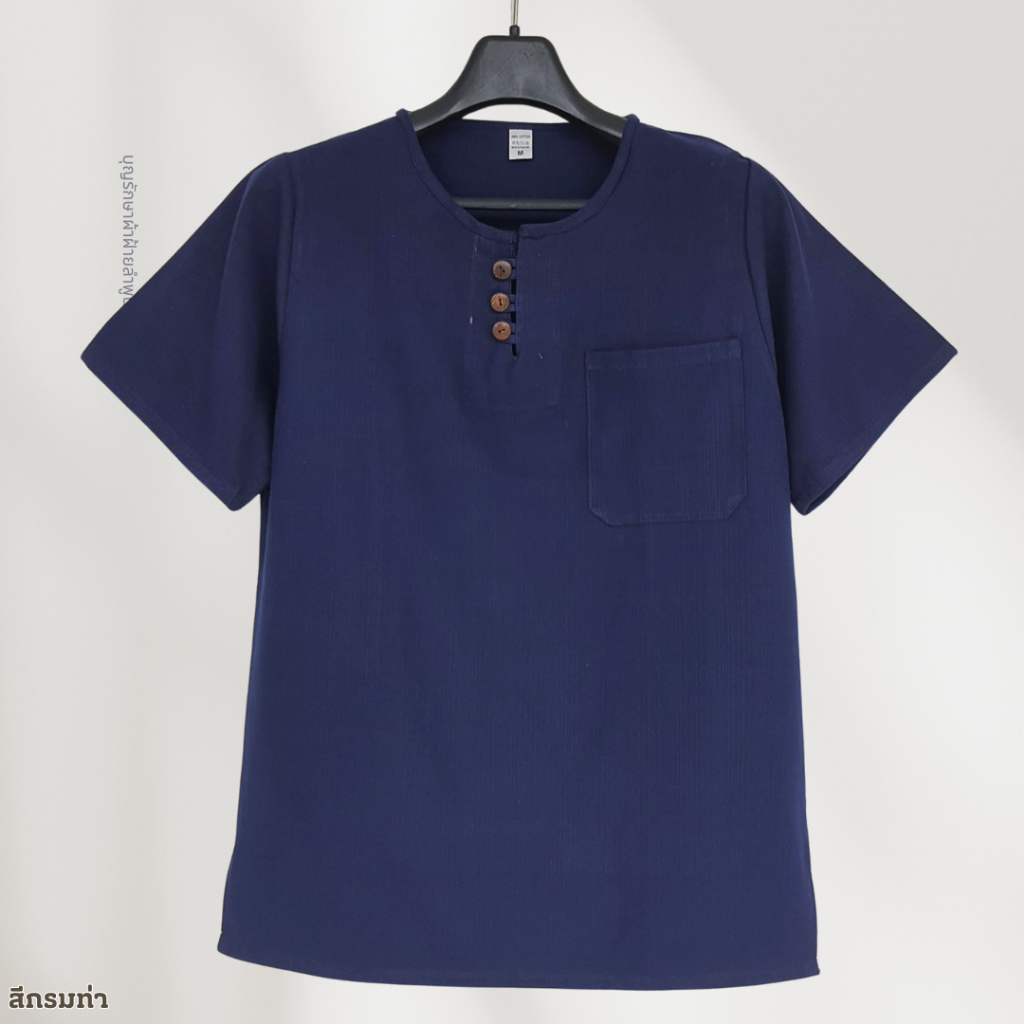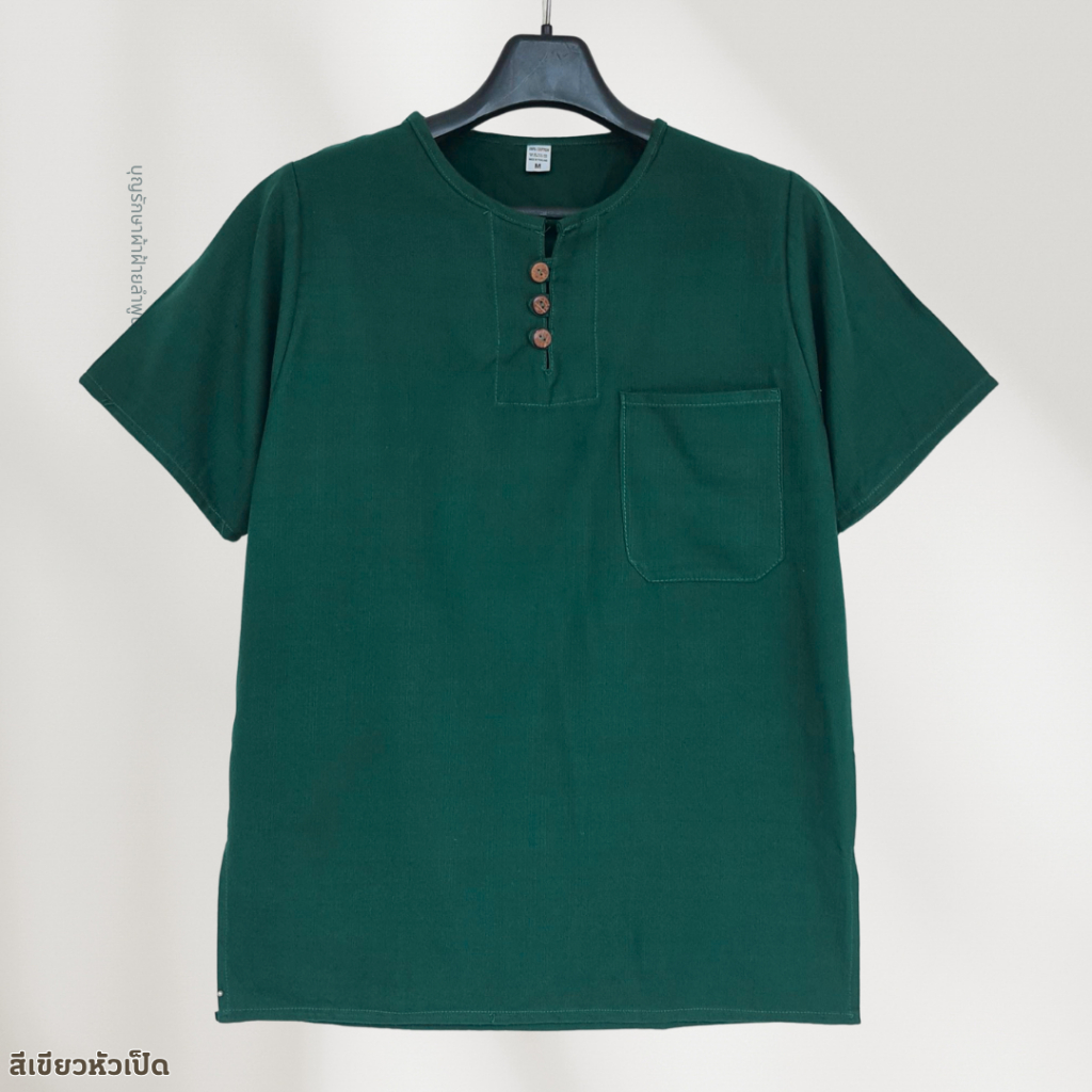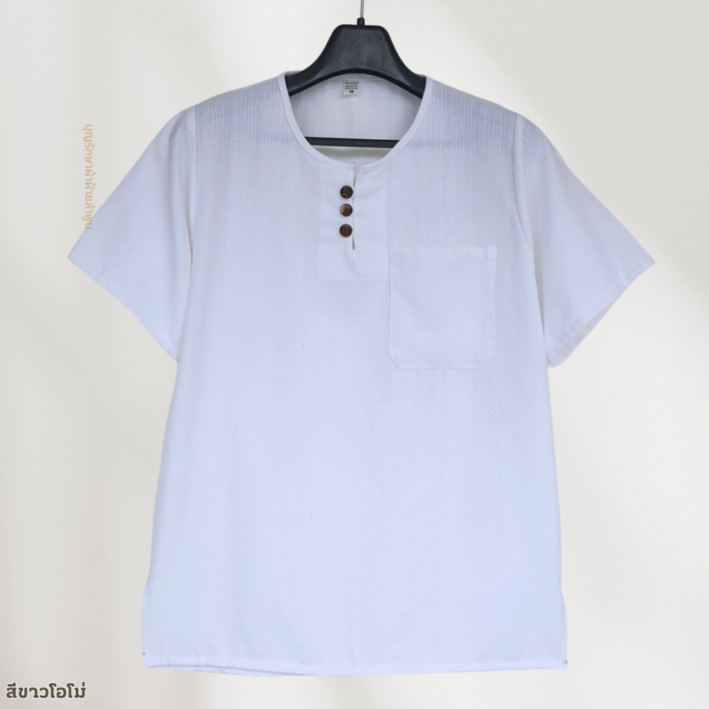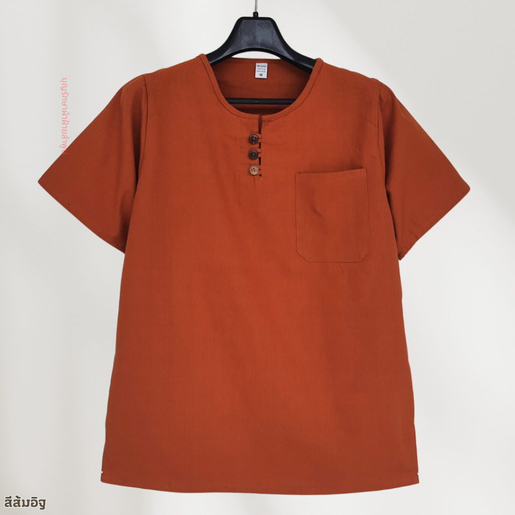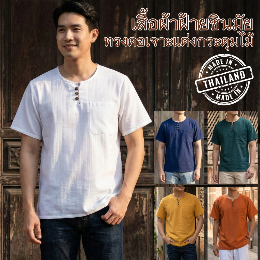 เสื้อผ้าฝ้ายชินมัย แต่งกระดุมไม้ 3เม็ด
