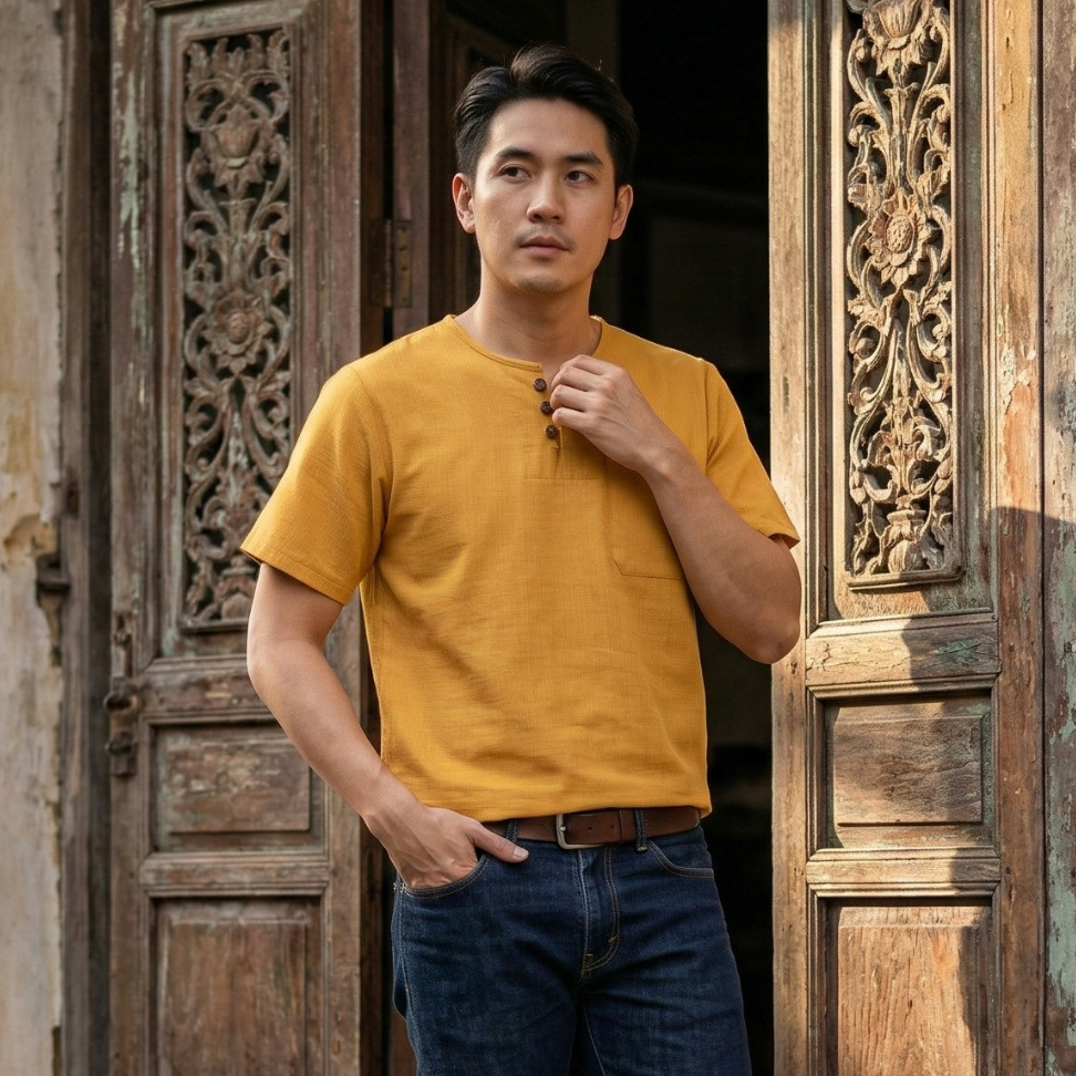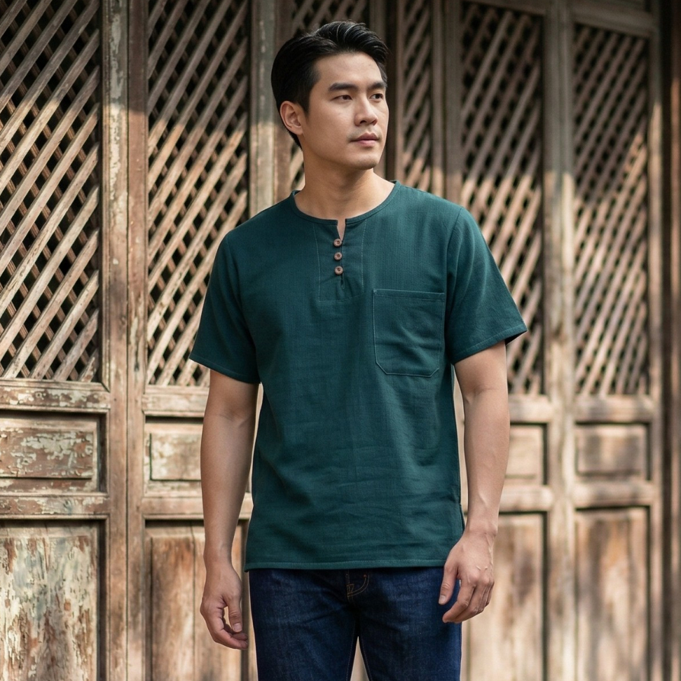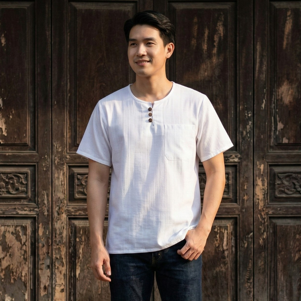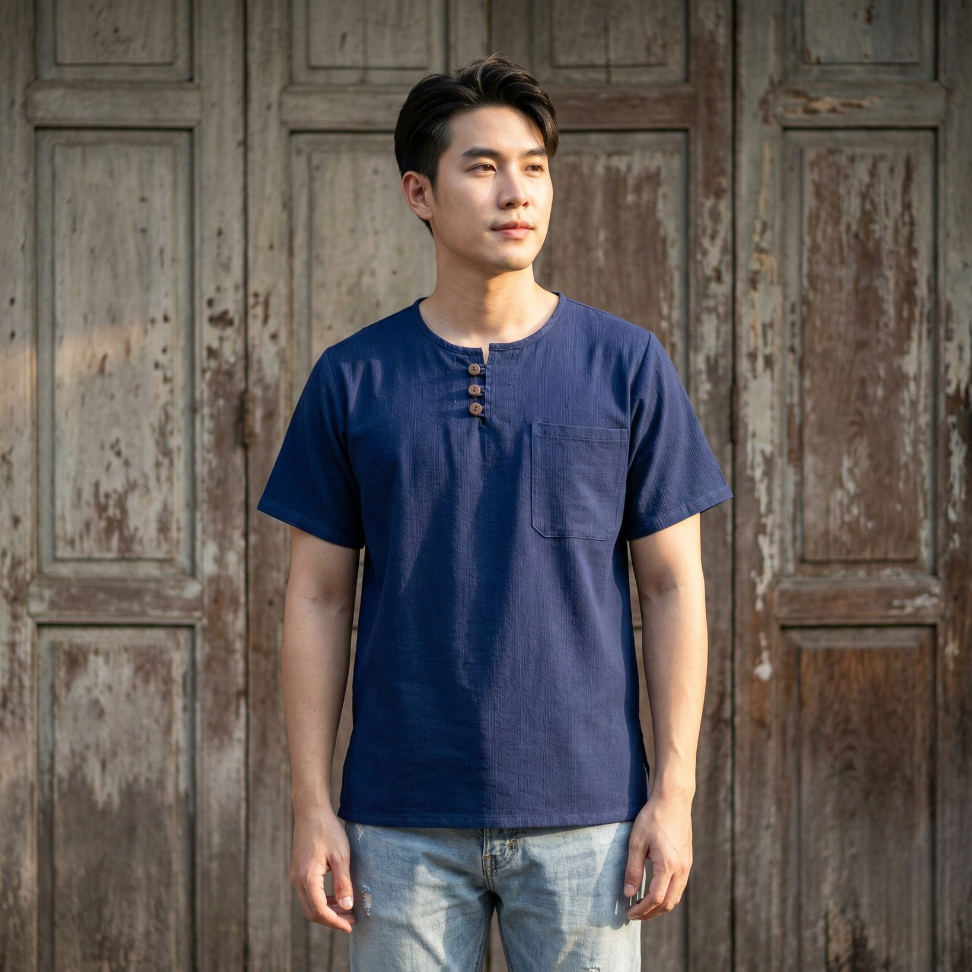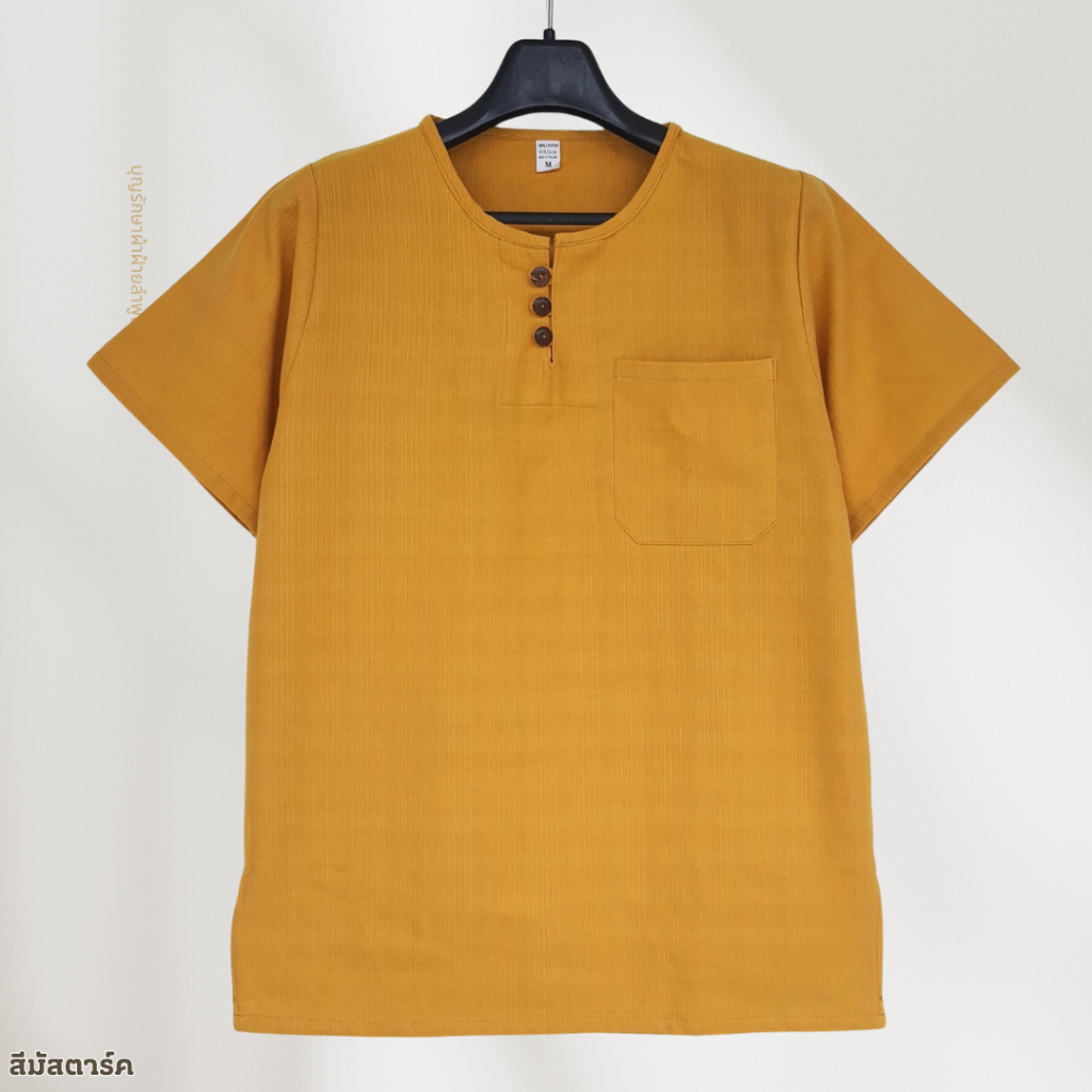 เสื้อผ้าฝ้ายชินมัย แต่งกระดุมไม้ 3เม็ด