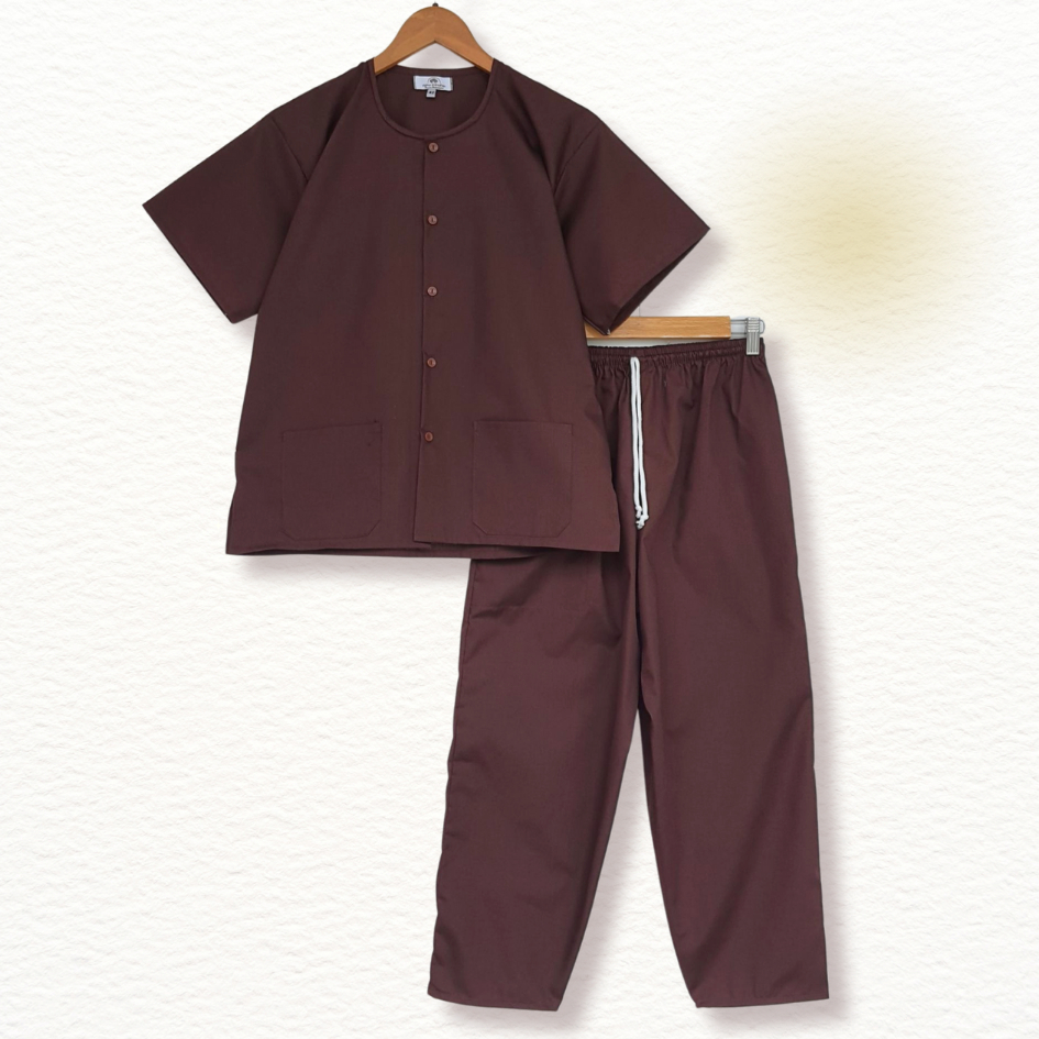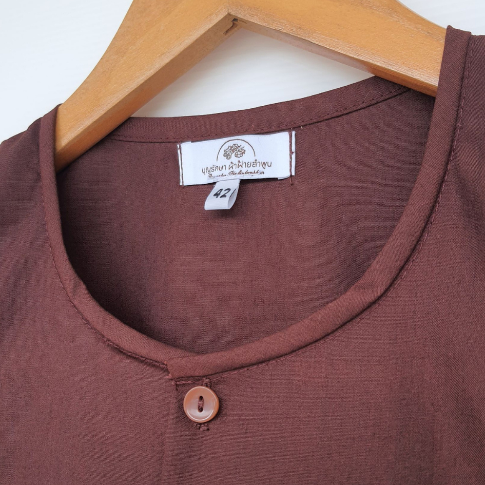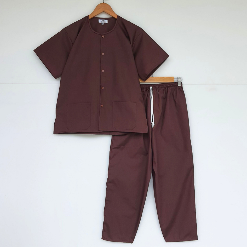 ชุดปฏิบัติธรรมสีน้ำตาล ได้ทั้งชุด (เสื้อ+กางเกง) ผ้าฝ้ายโทเร สีกรัก ยิ่งซักยิ่งนิ่ม ใส่ได้ทั้งชายและหญิง
