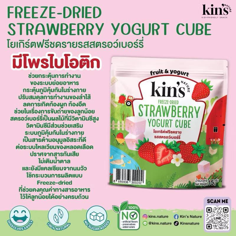 Kin’s Nature 12M+ Strawberry Yogurt Cube โยเกิร์ต กรอบสตรอว์เบอร์รี่ ขนมสำหรับเด็ก