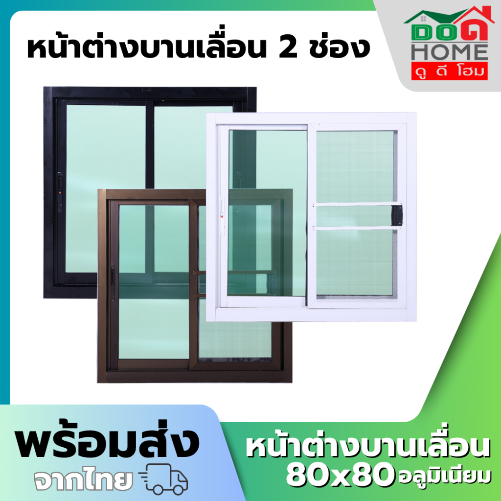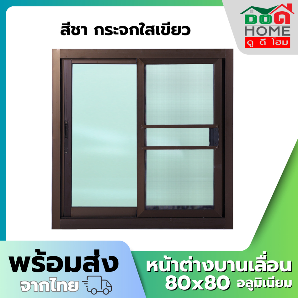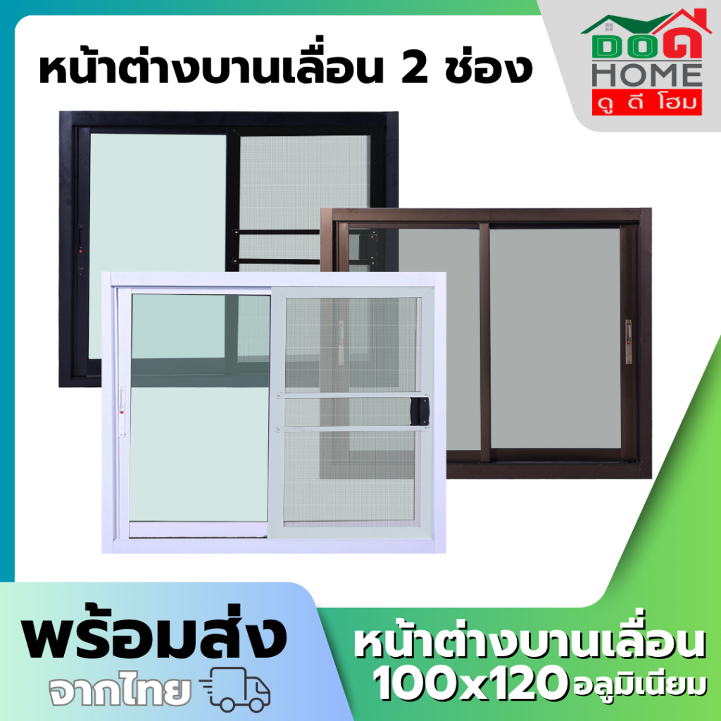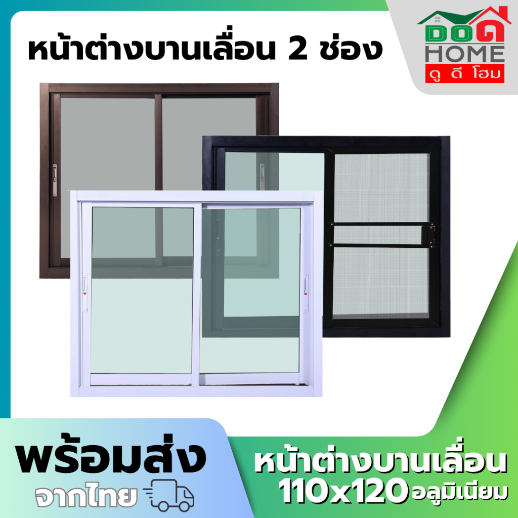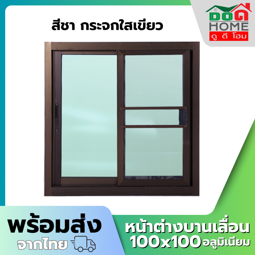 หน้าต่างบานเลื่อน 2 ช่อง 80x80 100x100 100x120 110x120 วงกบใหญ่ กระจกหนา คุณภาพดี มีสินค้าพร้อมส่ง