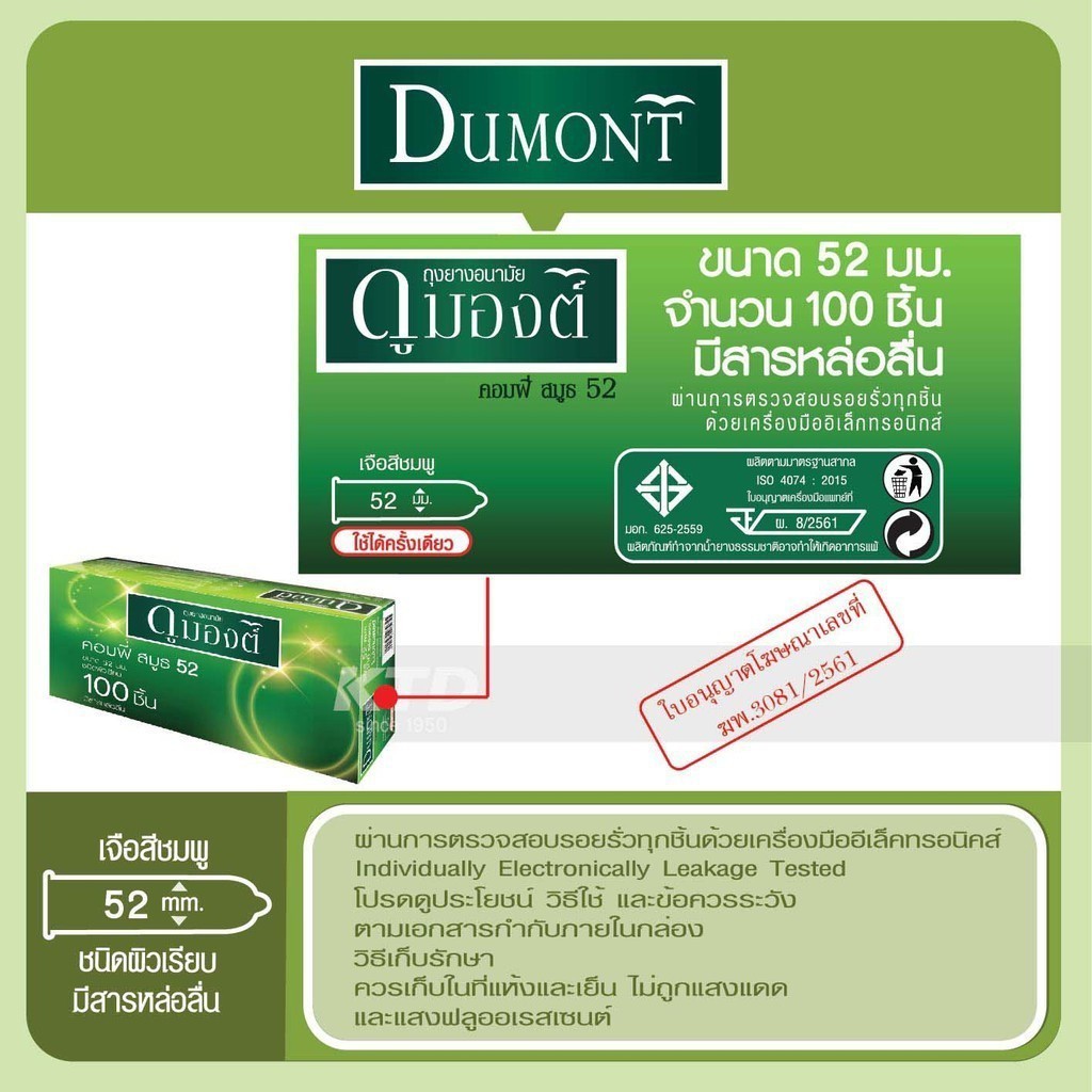 (ยกกล่อง 100 ชิ้น) Dumont Comfy ดูมองต์ คอมฟี่ สมูธ ขนาด 52 มม. บรรจุ 100 ชิ้น [1 กล่อง] ถุงยางอนามัย condom ถุงยาง