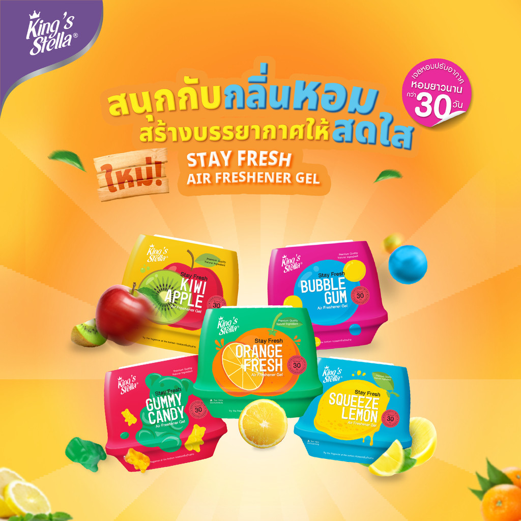 เจลน้ำหอมปรับอากาศ King's Stella Stay Fresh Air Freshener Gel เนื้อเจลบริสุทธิ์จากธรรมชาติ หอมยาวนาน 30 วัน 180g