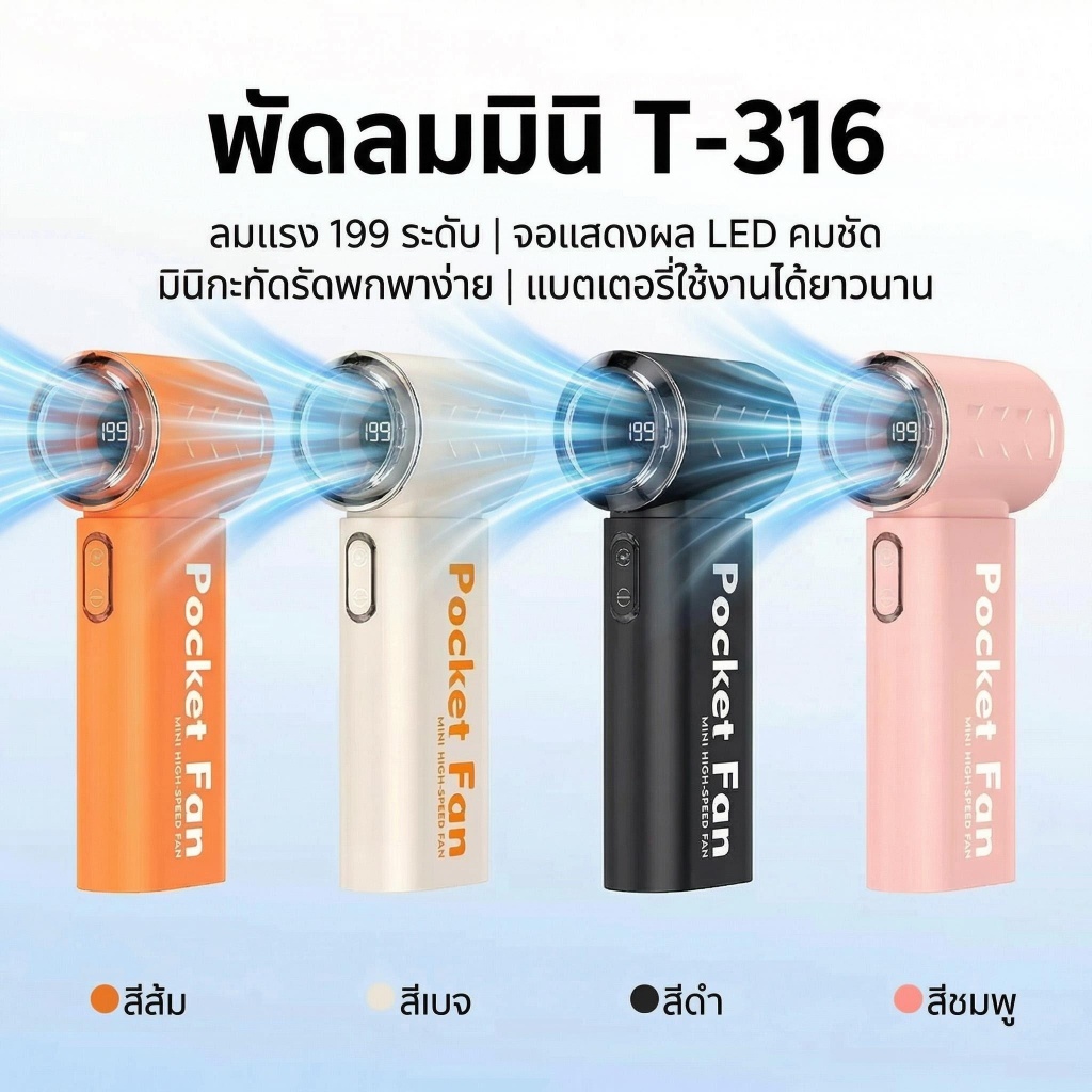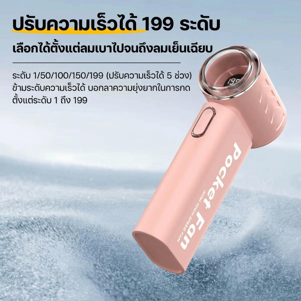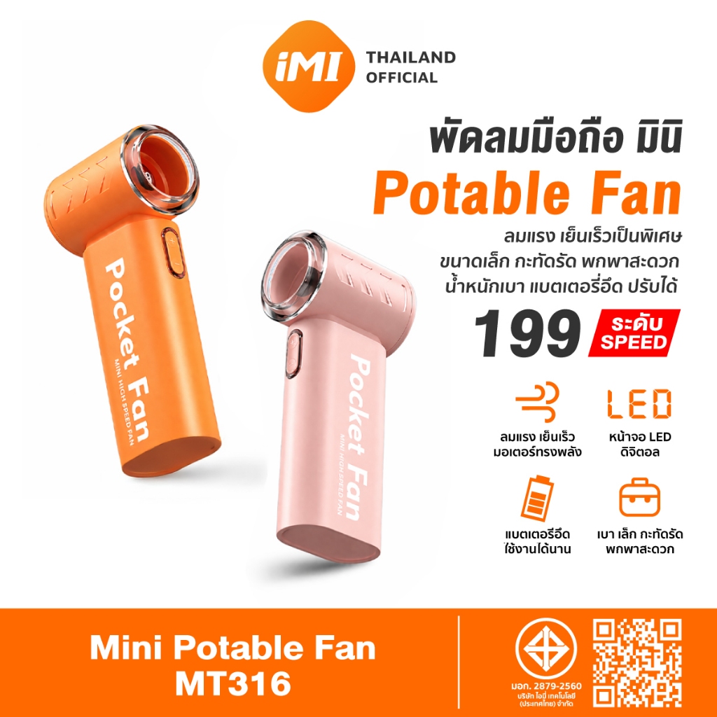 iMI พัดลมมินิ 199ระดับ ลมแรงสูง จอแสดงผล LED แบตเตอรี่ยาวนาน พัดลมพกพาไฮสปีด Portable Fan