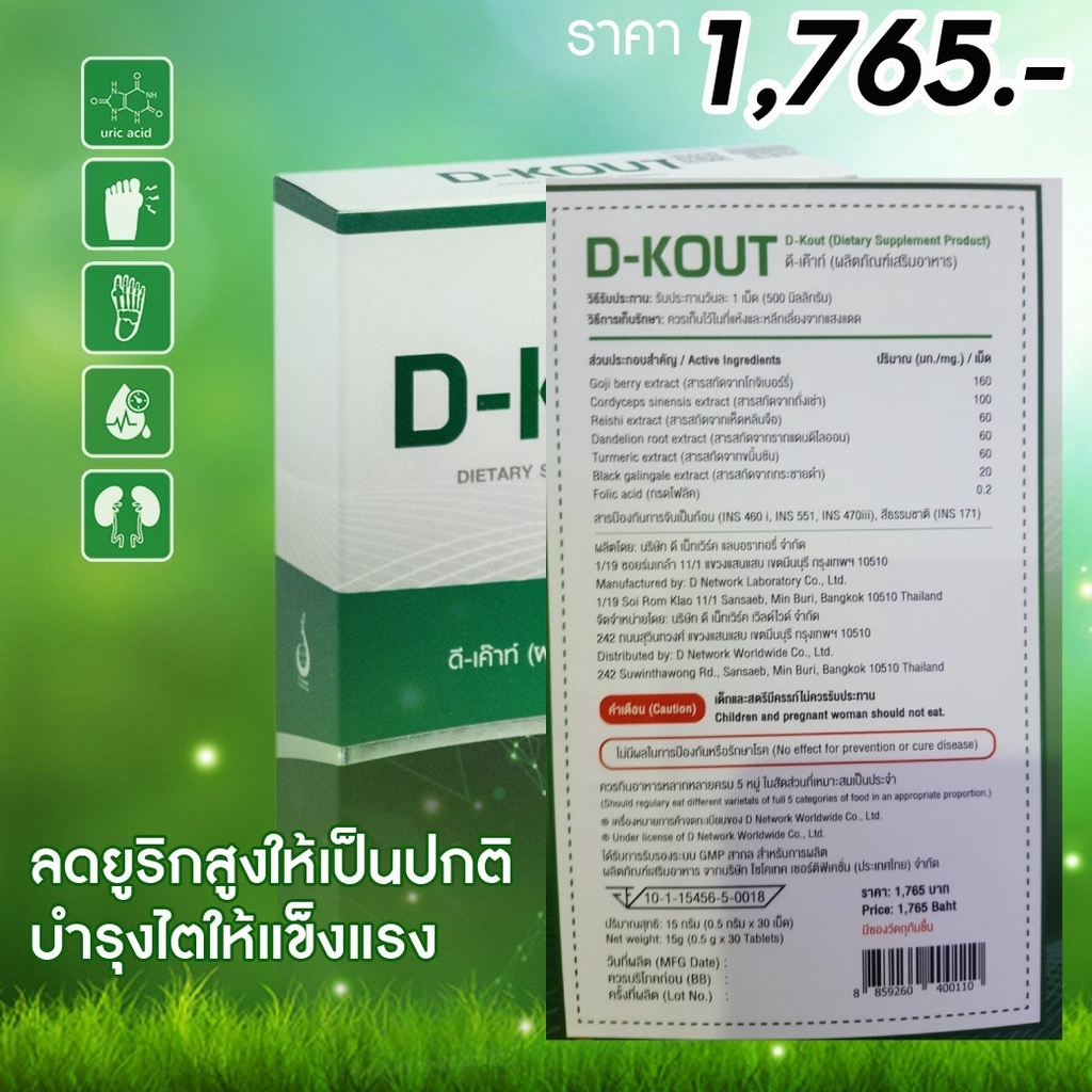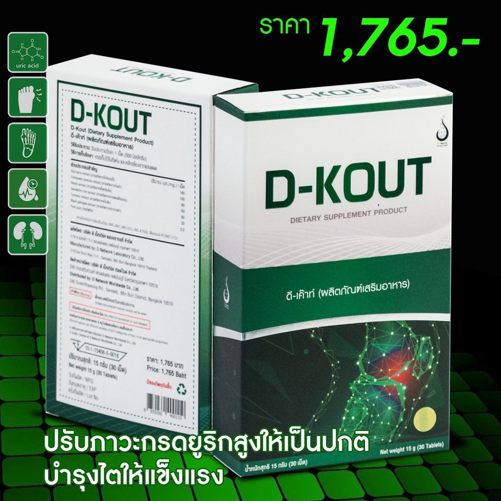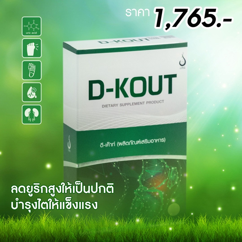 ดีเค๊าท์ (D-KOUT) อาหารเสริมเพื่อโรคเก๊าท์สมุนไพรลดกรดยูริค บำรุง ไต ลดอาการปวดตามข้อ ลดอาการอักเสบ ปวดบวมแดง ฟื้นฟูโรคเ