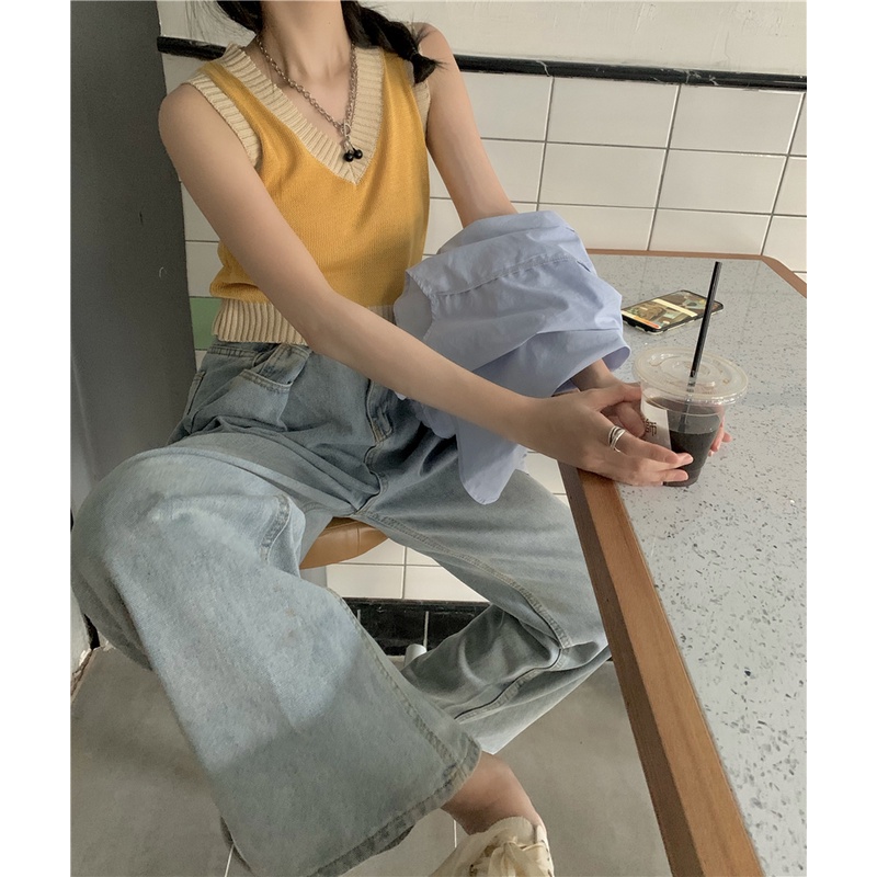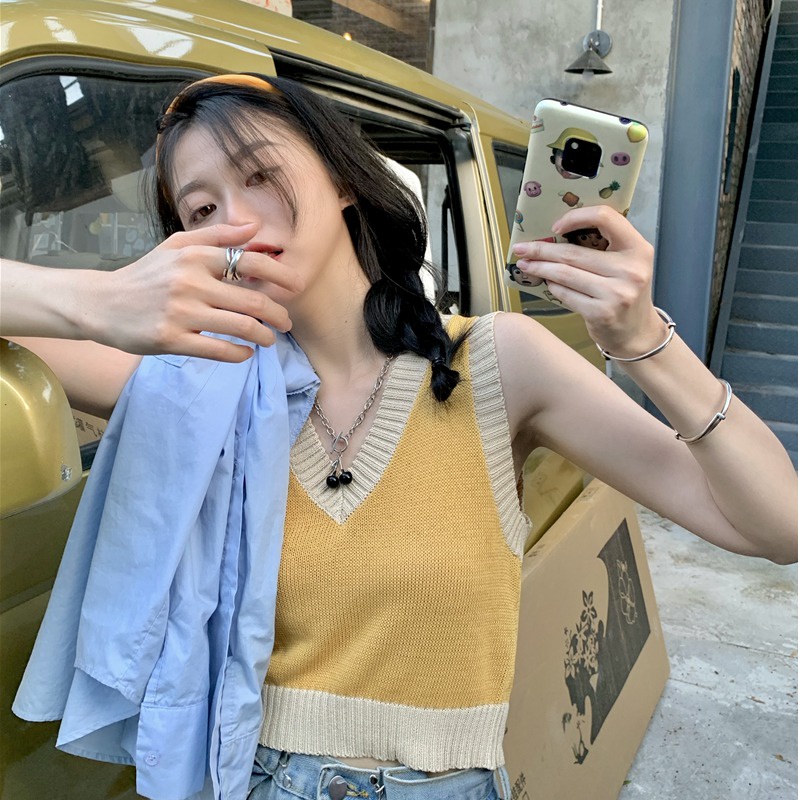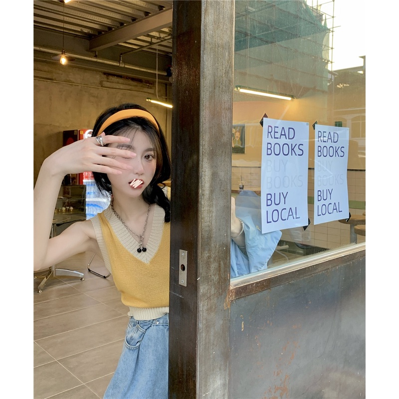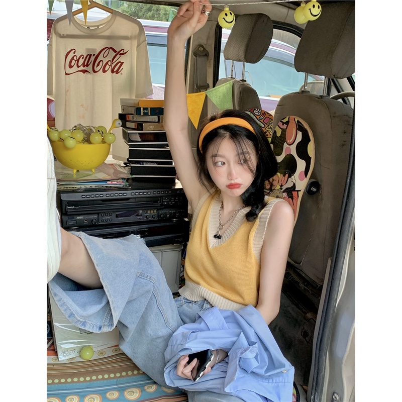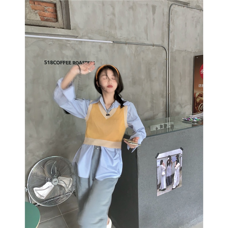 mimi&didi ❤️ เสื้อกั๊กไหมพรม แบบสวมหัว สไตล์ย้อนยุค เกาหลี สำหรับผู้หญ ิง19991