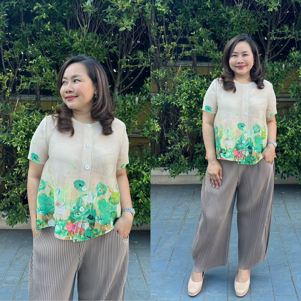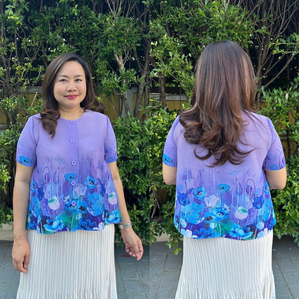 Pleatbynisa A940 เสื้ออัดพลีท แขนสั้น ลายดอก ดีไซน์เรียบหรู น่ารัก สำหรับทุกโอกาส พร้อมส่ง
