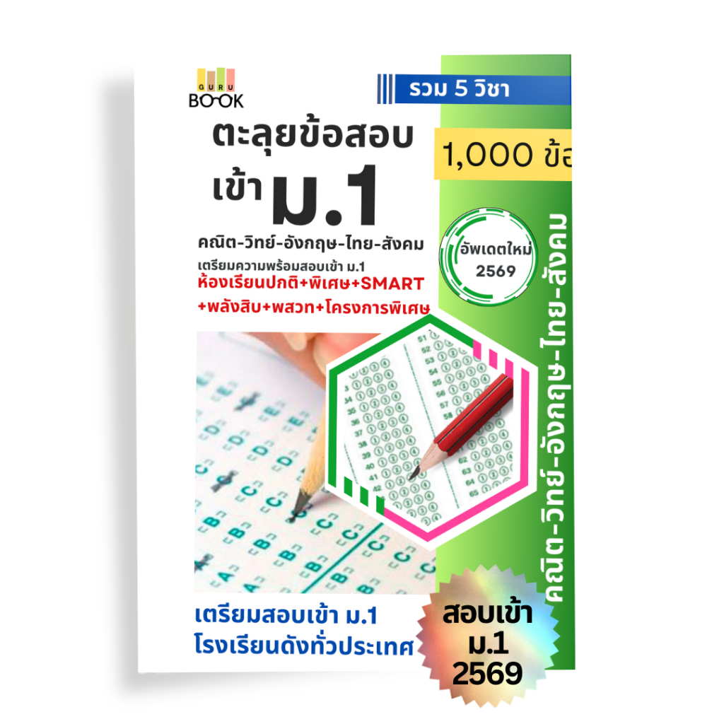 หนังสือตะลุยโจทย์เตรียมสอบเข้า ม.1 พร้อม เฉลย 5 วิชา วิทยาศาสตร์ คณิตศาสตร์ ภาษาอังกฤษ ภาษาไทย สังคม