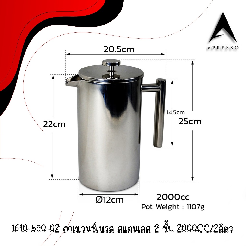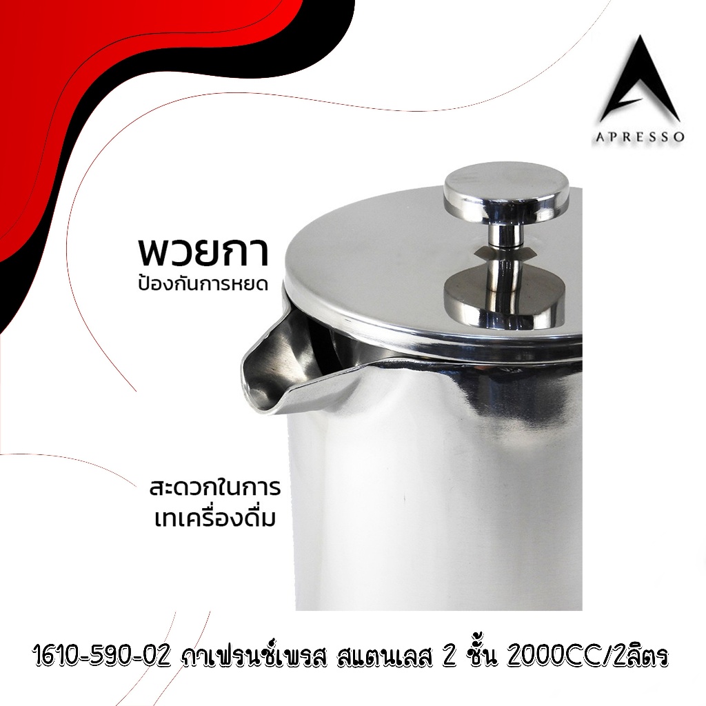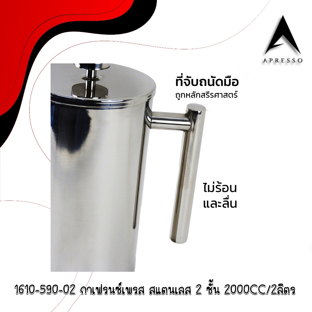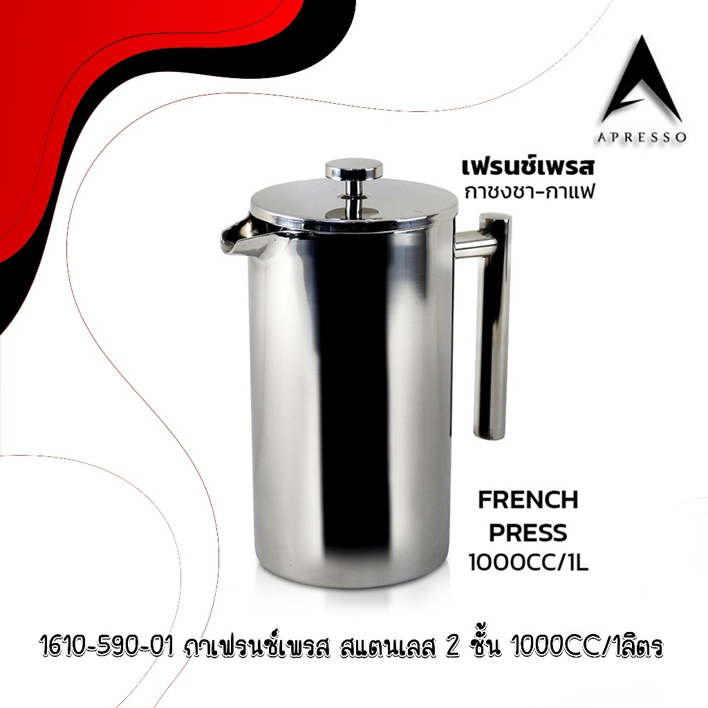 French press coffee maker, 2-layer stainless steel pot กาเฟรนช์เพรส ชงกาแฟ ตีฟองนม กาสแตนเลส 2 ชั้น 1610-590
