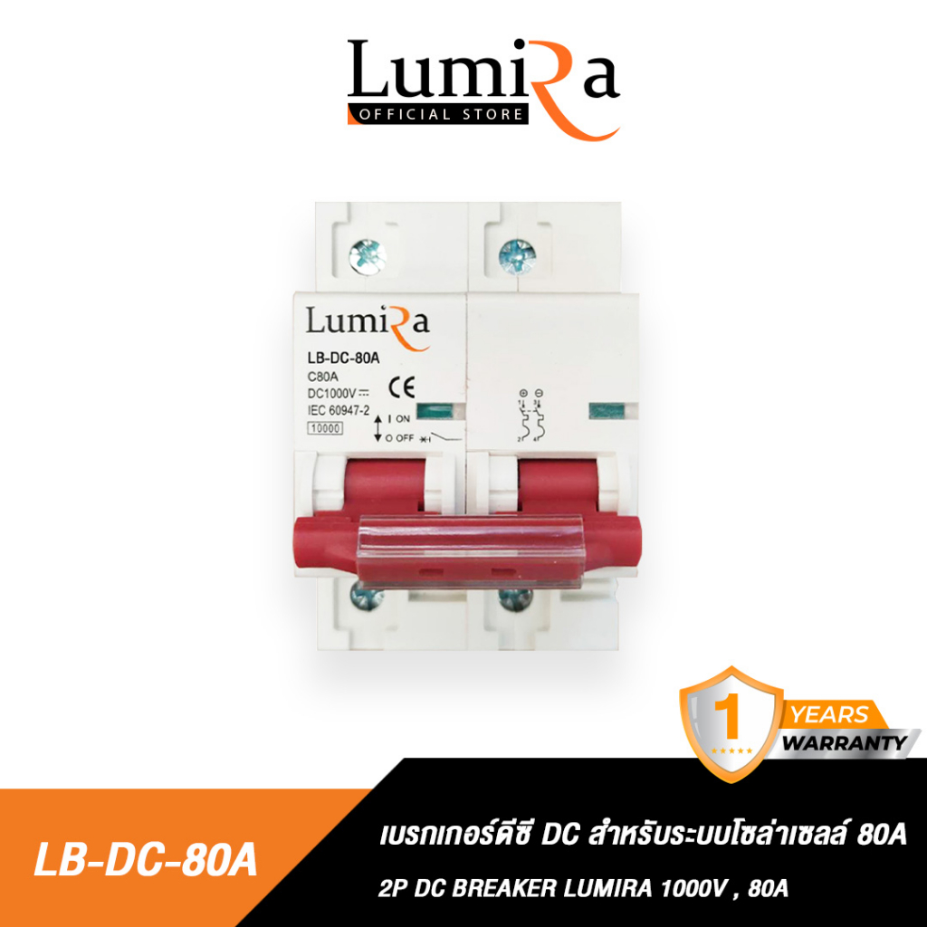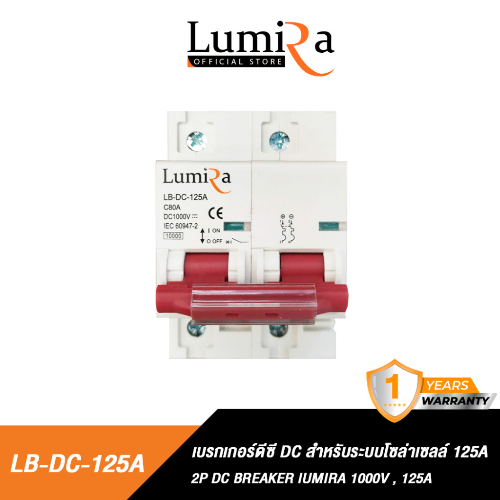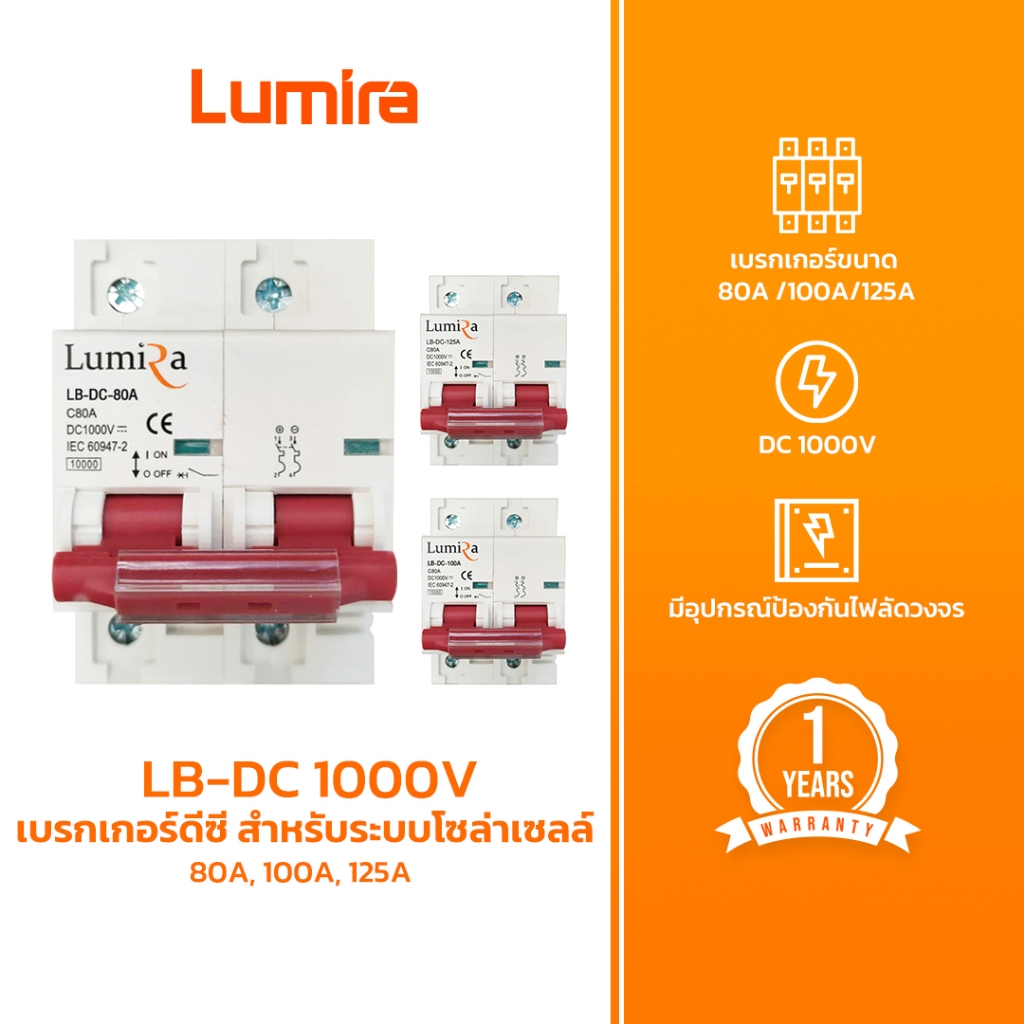 ( สินค้าตัวเลข Amp ผิด ) Lumira เบรกเกอร์ดีซี รุ่น LB-DC 1000V 80A, 100A, 125A สำหรับระบบโซล่าเซลล์ Breaker 2P DC