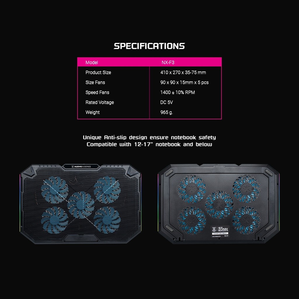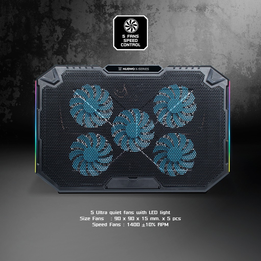 Nubwo COOLER PAD พัดลมระบายความร้อนโน้ตบุ๊ค พัดลม 5 ตัว สำหรับเครื่อง 12-17 นิ้ว ปรับไฟได้ รุ่น NX-F3 รัปประกัน 2 ปี