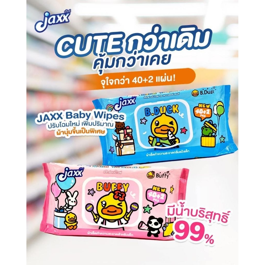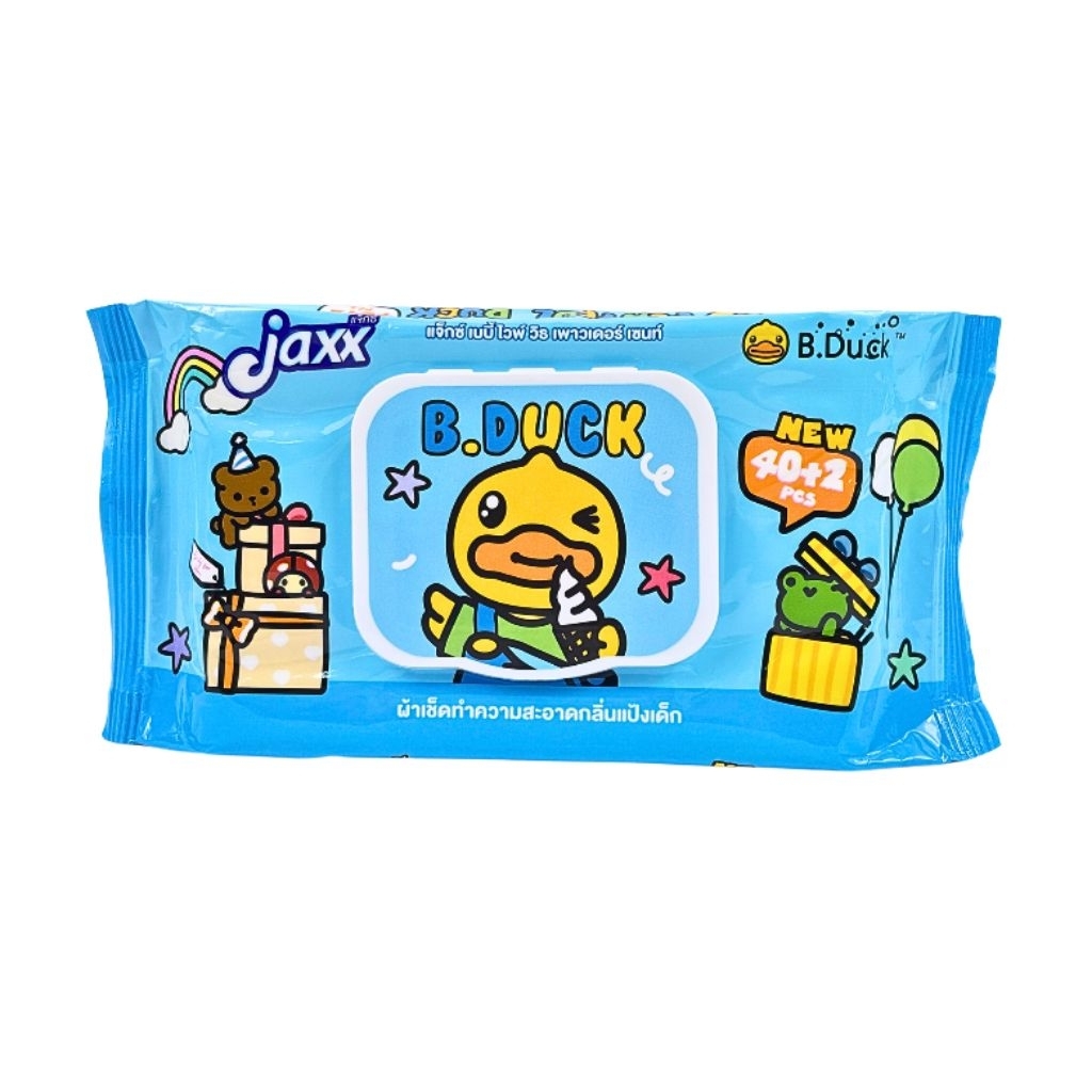 (1ห่อ) Jaxx ทิชชู่เปียก ผ้าเปียก B.DUCK ปริมาณ 40+2 แผ่น มาพร้อมฝาเปิด-ปิด