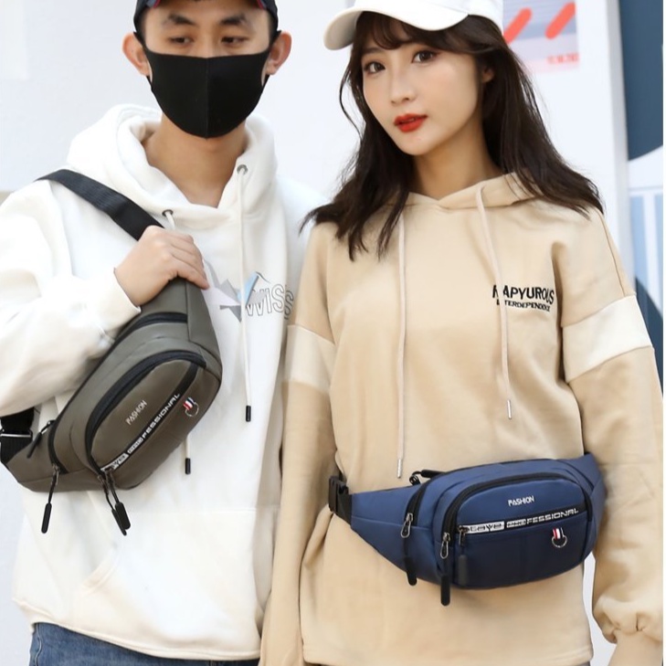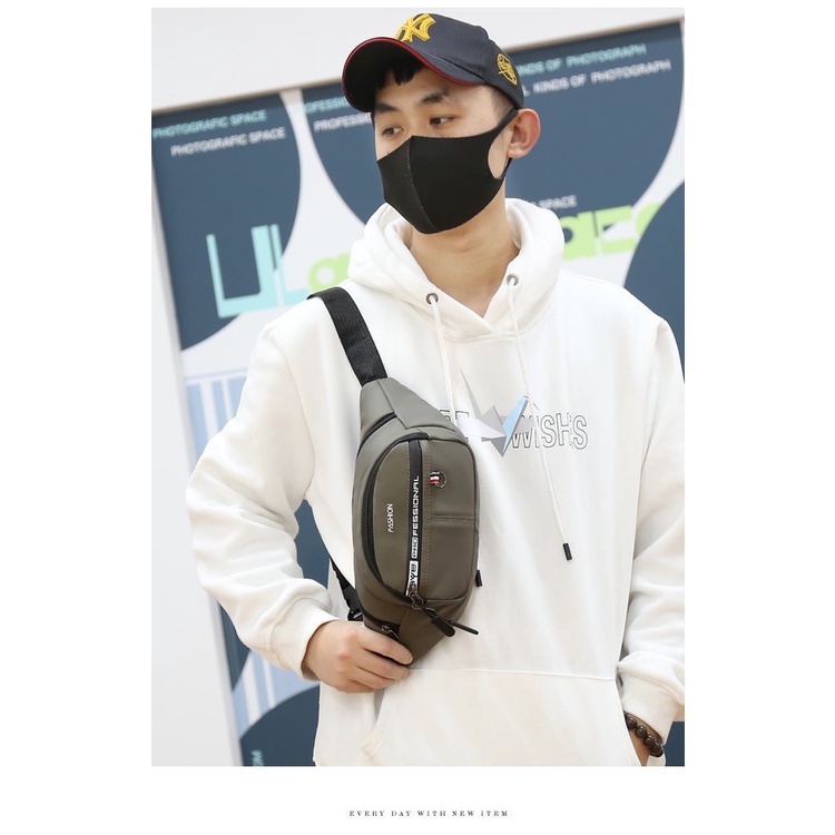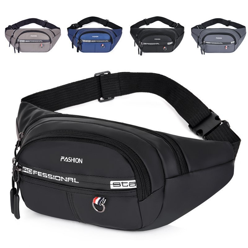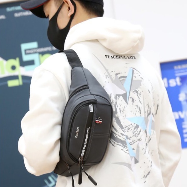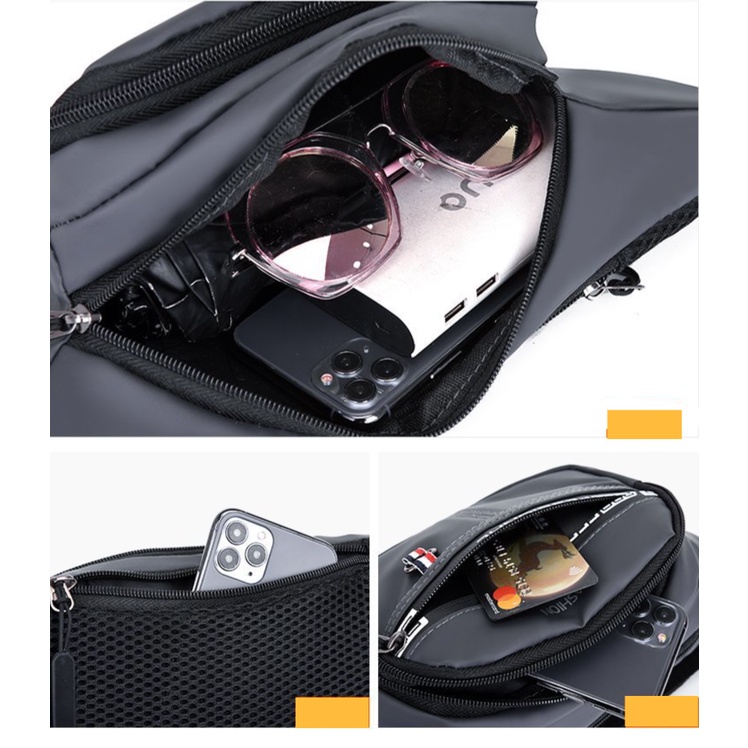(w194) กระเป๋าคาดอก คาดเอว ผ้ากันน้ำ แต่งห้อยกุญแจ redskyzone