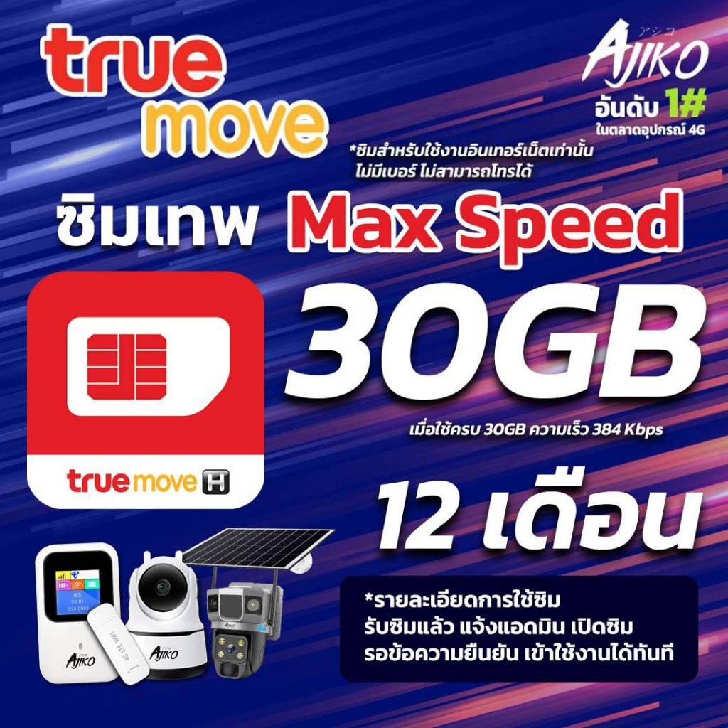 ซิมเน็ตรายปี ซิมเทพ Max speed 30GB/เดือน ซิมทรู เน็ตรายเดือน ไม่ลดสปีด โทรไม่ได้ (แจ้งร้านลงทะเบียน)