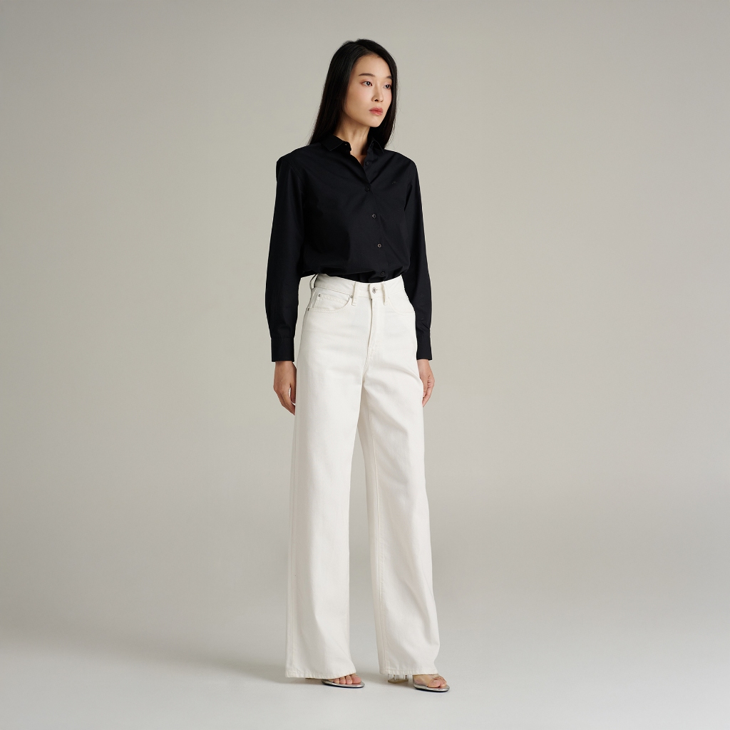 Mc JEANS กางเกงยีนส์ผู้หญิง ทรงปลายขากว้าง (Wide Legs) เอวกลาง สีอ๊อฟไวท์ MFWZ251