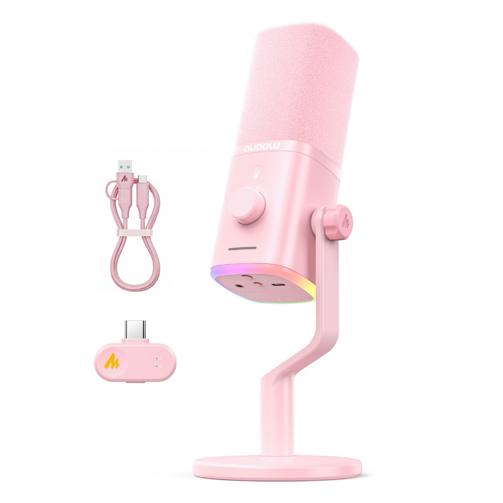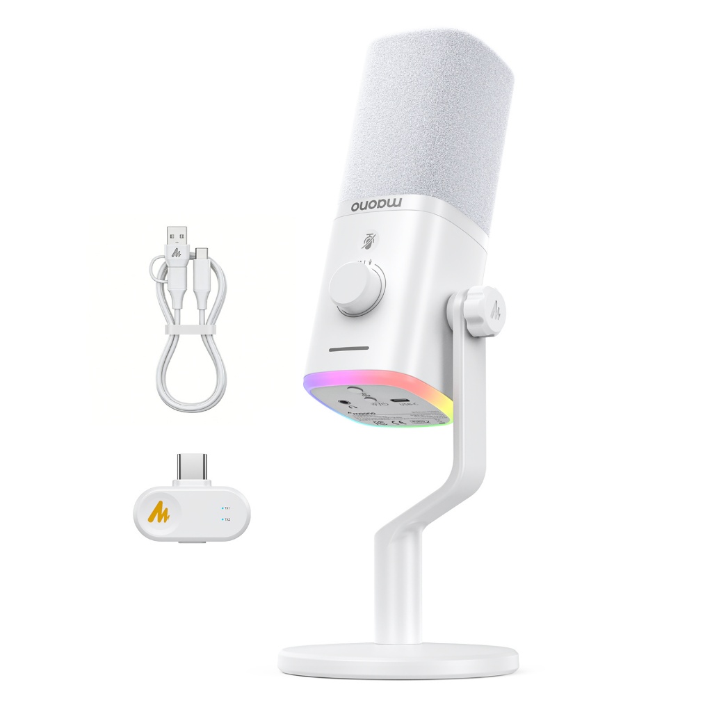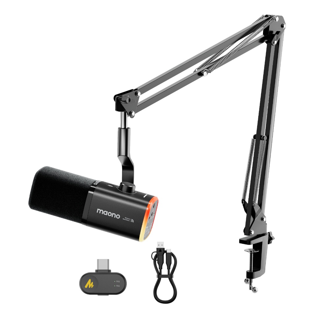 Maono PD100Wไมโครโฟนไดนามิกไร้สาย,ไมโครโฟนสําหรับเล่นเกมสองโหมด XLR/USB,สตูดิโอมืออาชีพ ไมโครโฟนสตรีมสด,ลดเสียงรบกวนด้วยแอป manolink สําหรับร้องเพลง/Podcasting/teaching