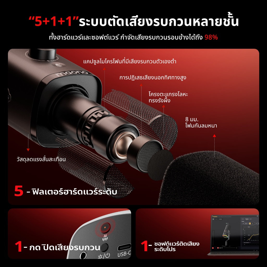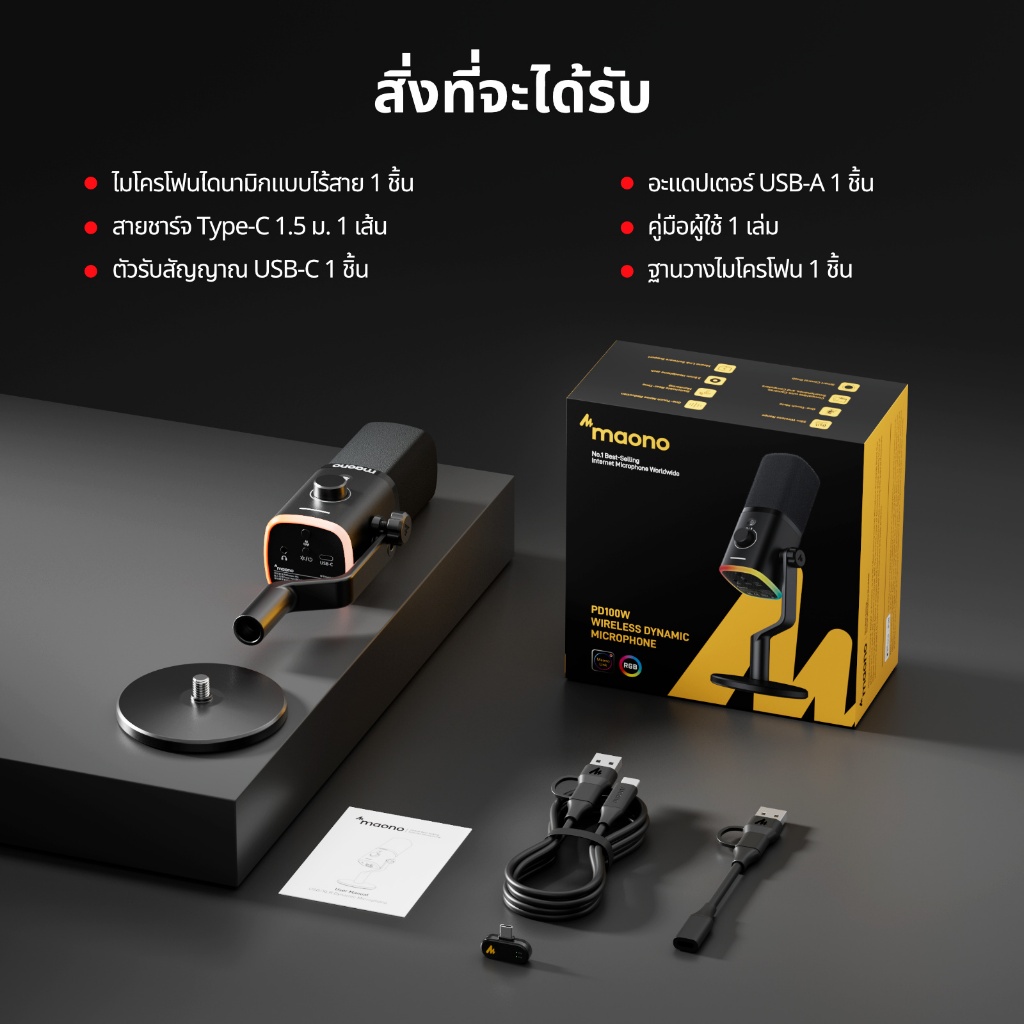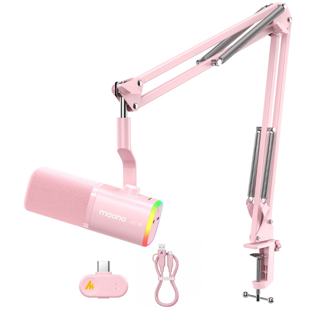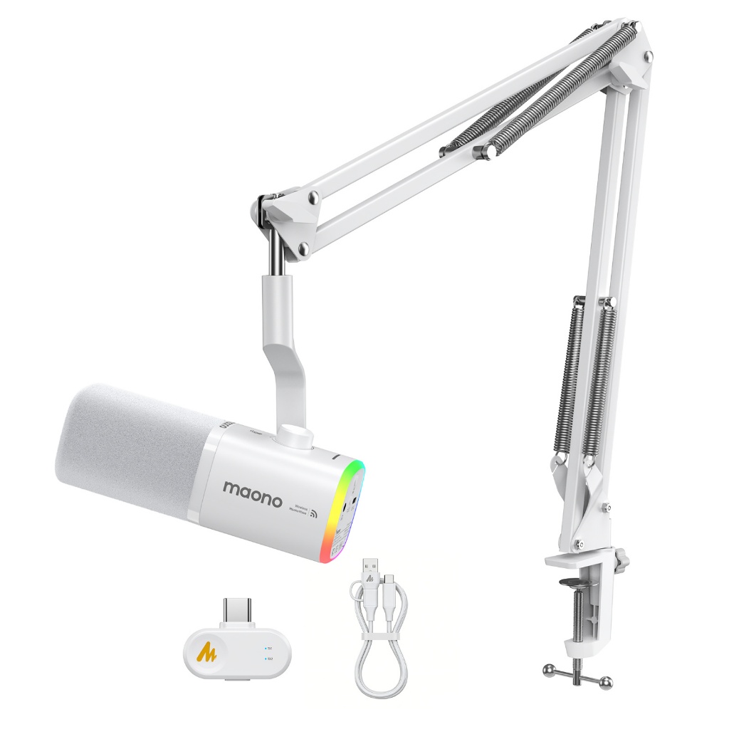 Maono PD100Wไมโครโฟนไดนามิกไร้สาย,ไมโครโฟนสําหรับเล่นเกมสองโหมด XLR/USB,สตูดิโอมืออาชีพ ไมโครโฟนสตรีมสด,ลดเสียงรบกวนด้วยแอป manolink สําหรับร้องเพลง/Podcasting/teaching