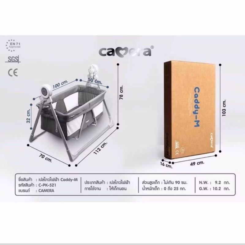 พร้อมส่ง Caddy-M CAMERA เปลไกวไฟฟ้า สามารถรับน้ำหนักได้มาก ถึง 25 kg.