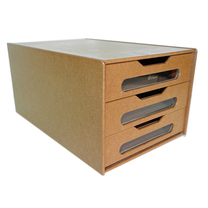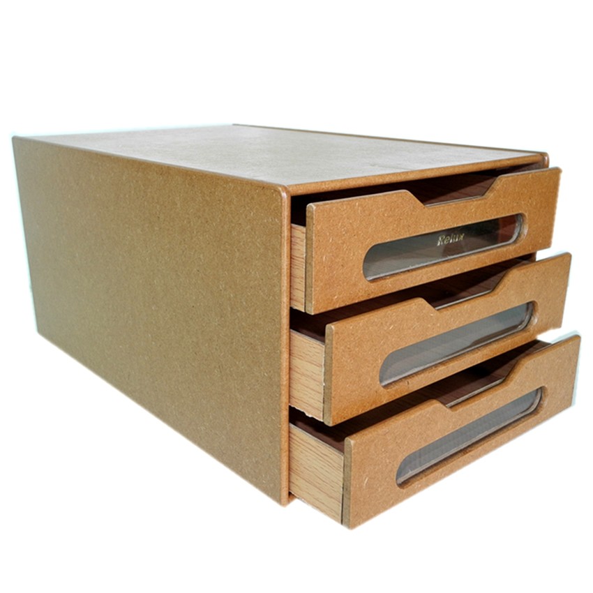 RELUX ตู้ลิ้นชักไม้อย่างดี *หน้าใส* ใส่เอกสาร A4-F4 3 ลิ้นชัก ไม้เคลือบผิว ขอบมน วางซ้อนได้ MDF-123B