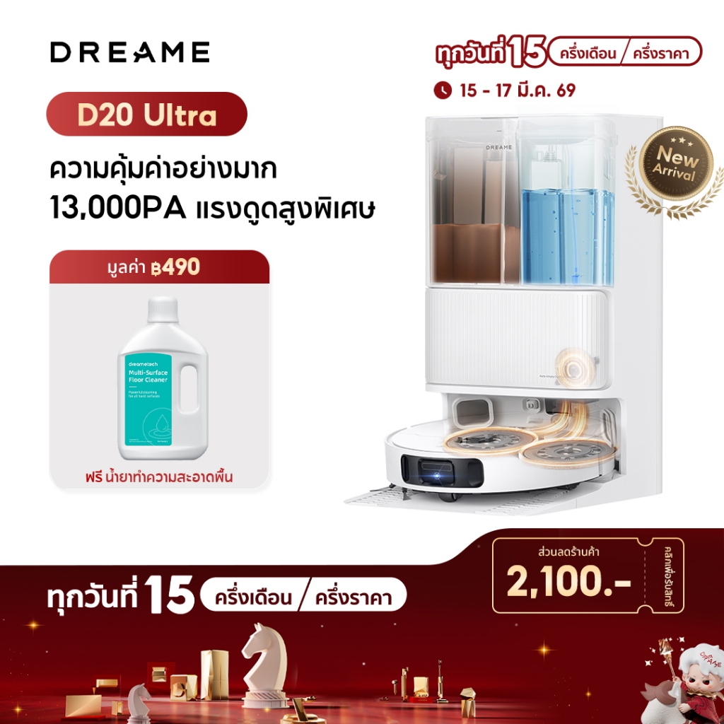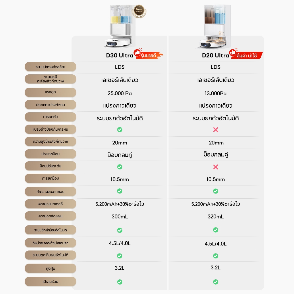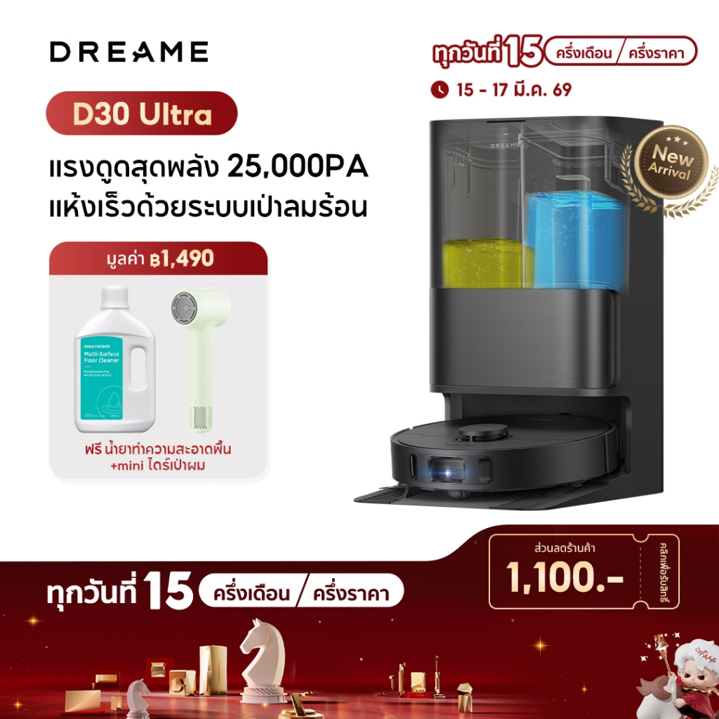 Dreame D30 Ultra / D20 Ultra Robot Vacuum 25000Pa ดูดฝุ่นถูพื้นอัตโนมัติ ล้างผ้าเอง MopExtend เลี่ยงสิ่งกีดขวางอัจฉริยะ
