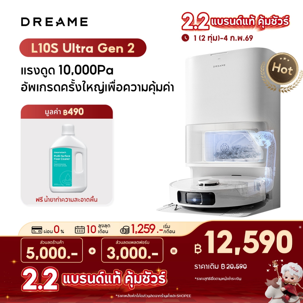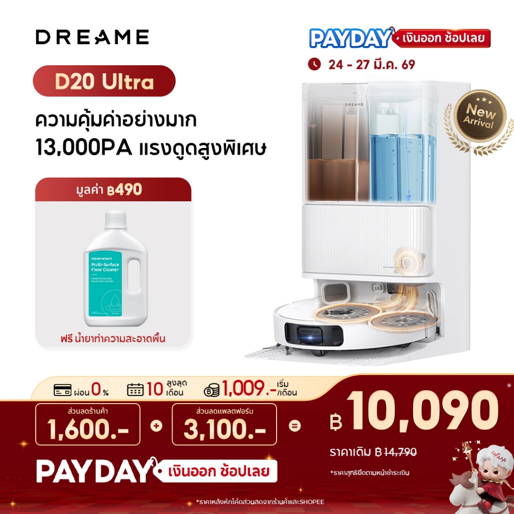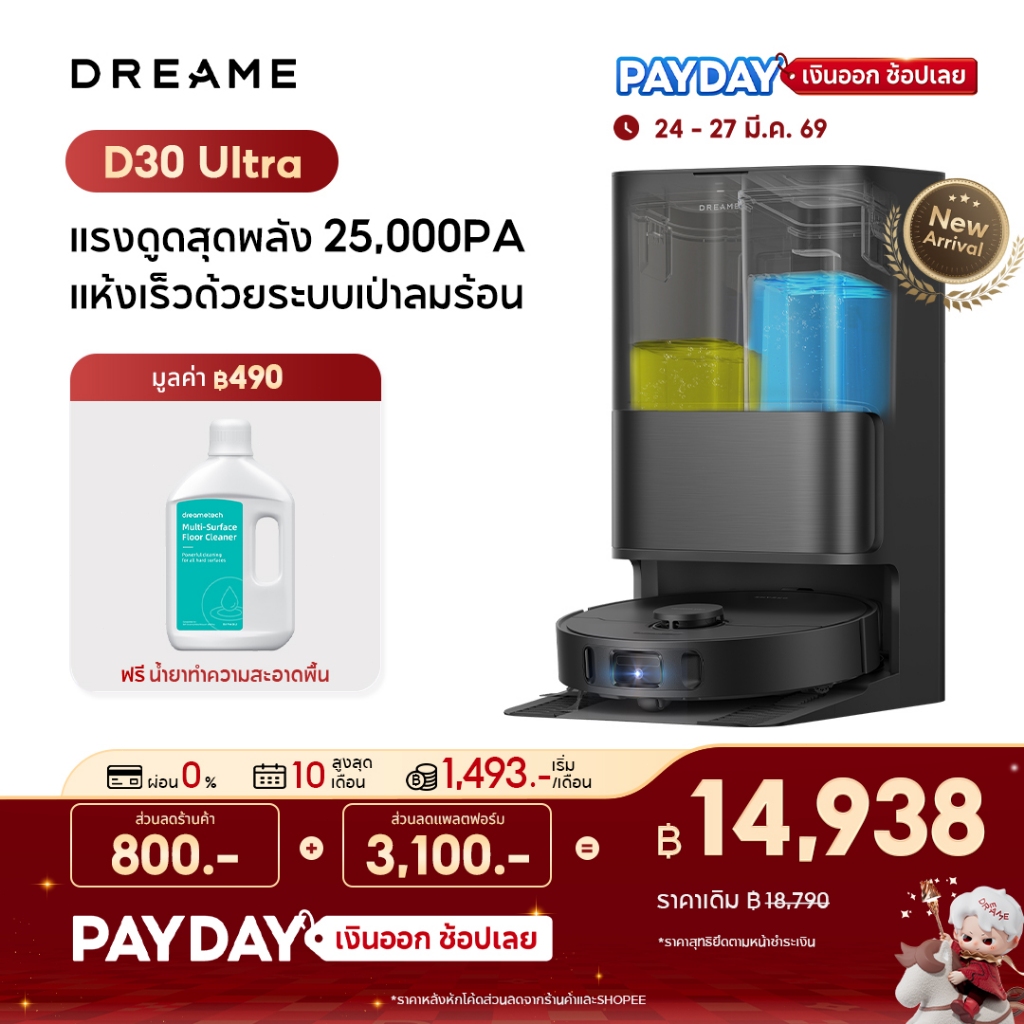 【2026 NEW】Dreame D30 Ultra / D20 Ultra Robot Vacuum 25,000Pa แรงดูดทรงพลัง ถูชิดขอบ ซักม็อบอัตโนมัติ ยกม็อบ 10.5 มม.