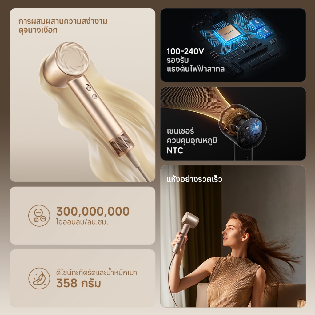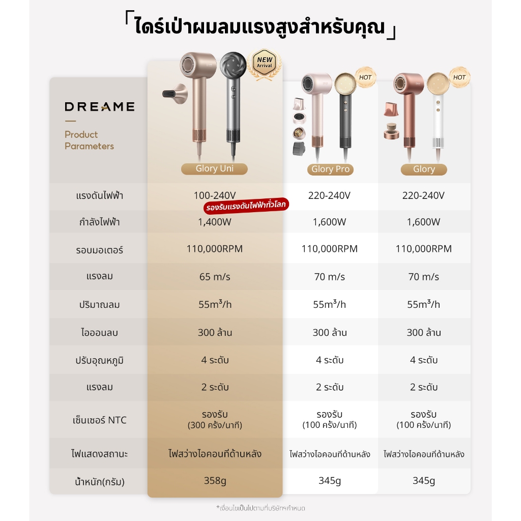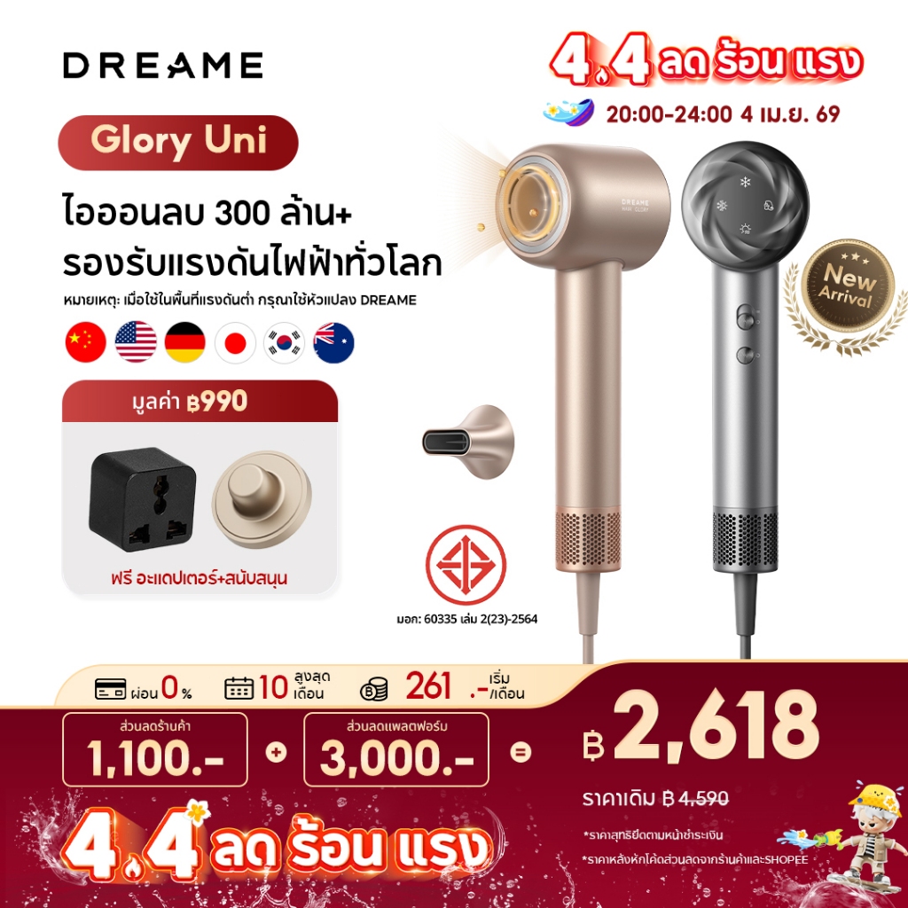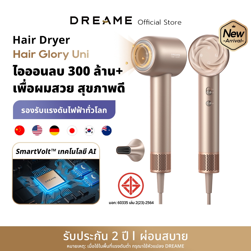 [NEW] Dreame Hair Glory Uni / Glory รองรับแรงดันไฟฟ้าทั่วโลก ไดร์เป่าผมความเร็วสูง เป่าแห้งไว ไอออนลบปกป้องเส้นผม