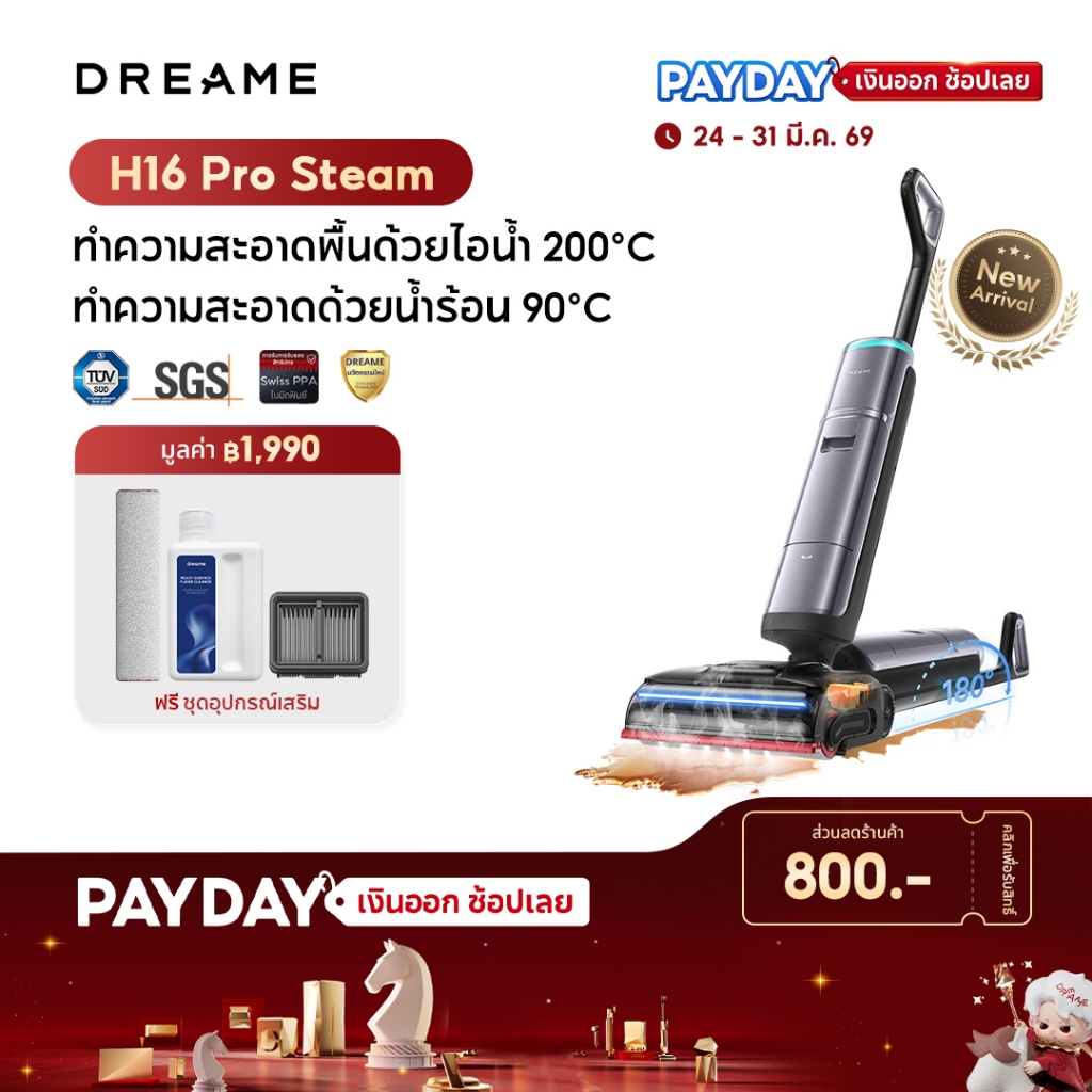 [NEW] Dreame H16 Pro Steam Wet & Dry Vacuum แรงดูดสูงสุด 28,000Pa ทำความสะอาดล้ำลึกด้วยไอน้ำร้อน 200°C และน้ำร้อน 90°C