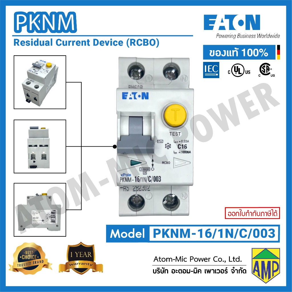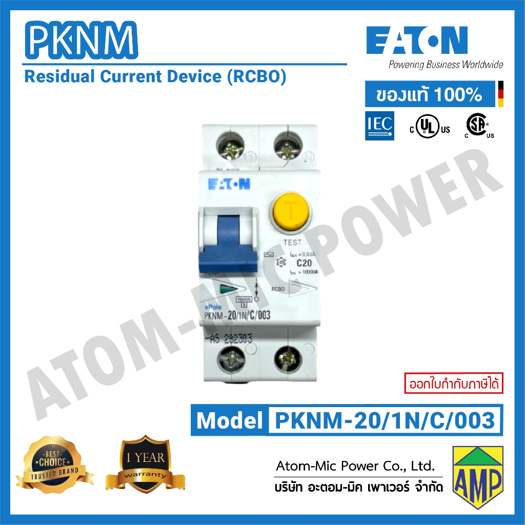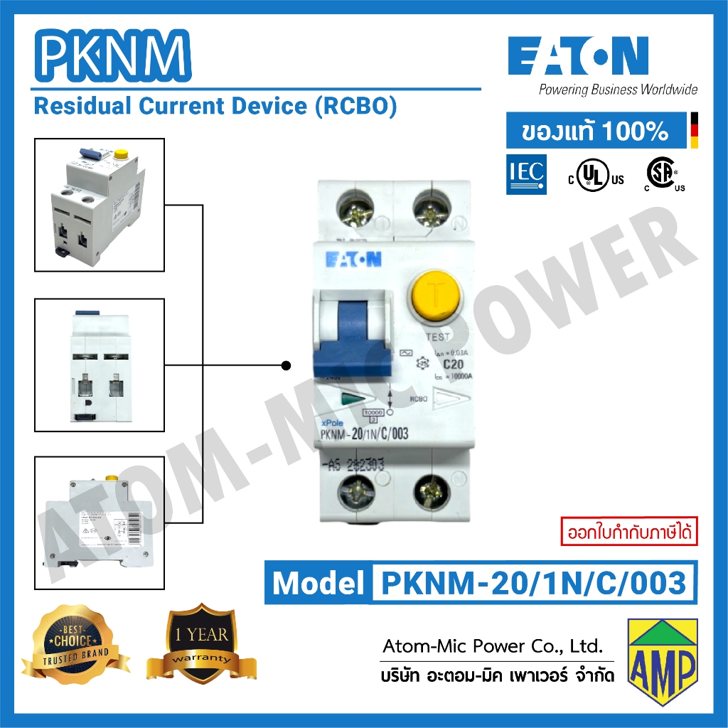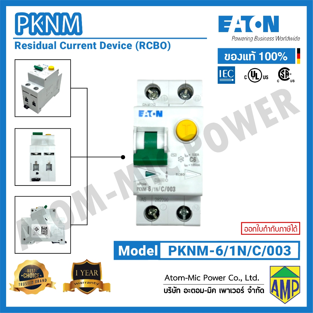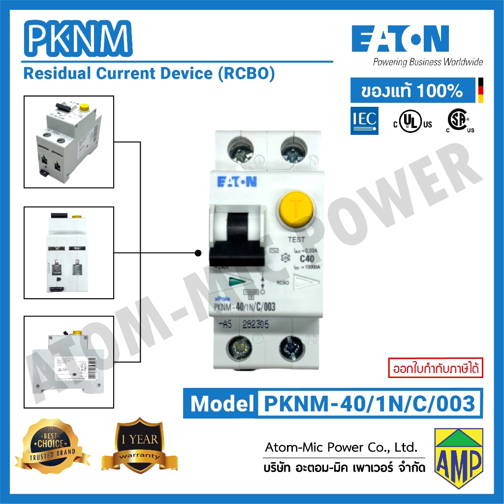 EATON PKNM อุปกรณ์ป้องกันไฟดูดพร้อมเบรกเกอร์ในตัว (RCBO) เบรกเกอร์กันดูด