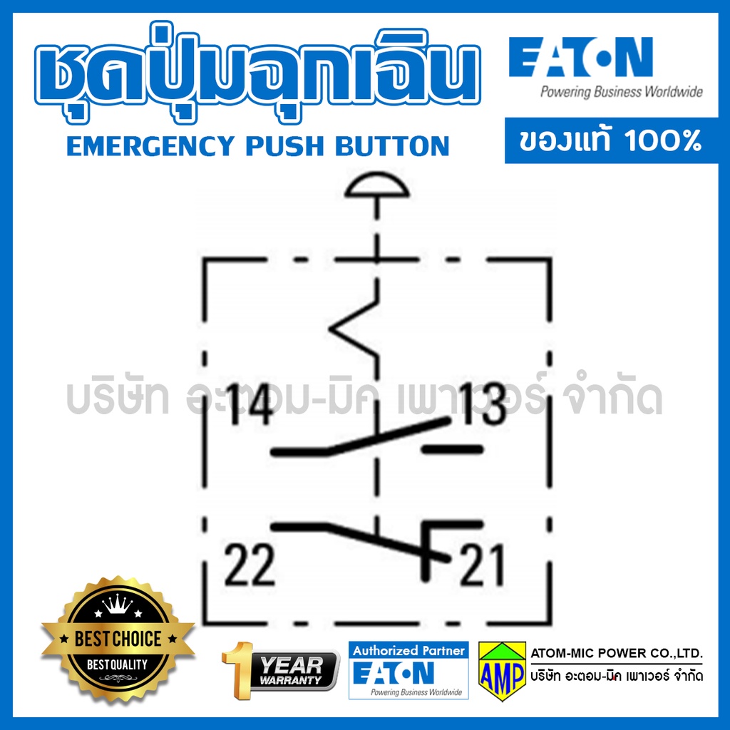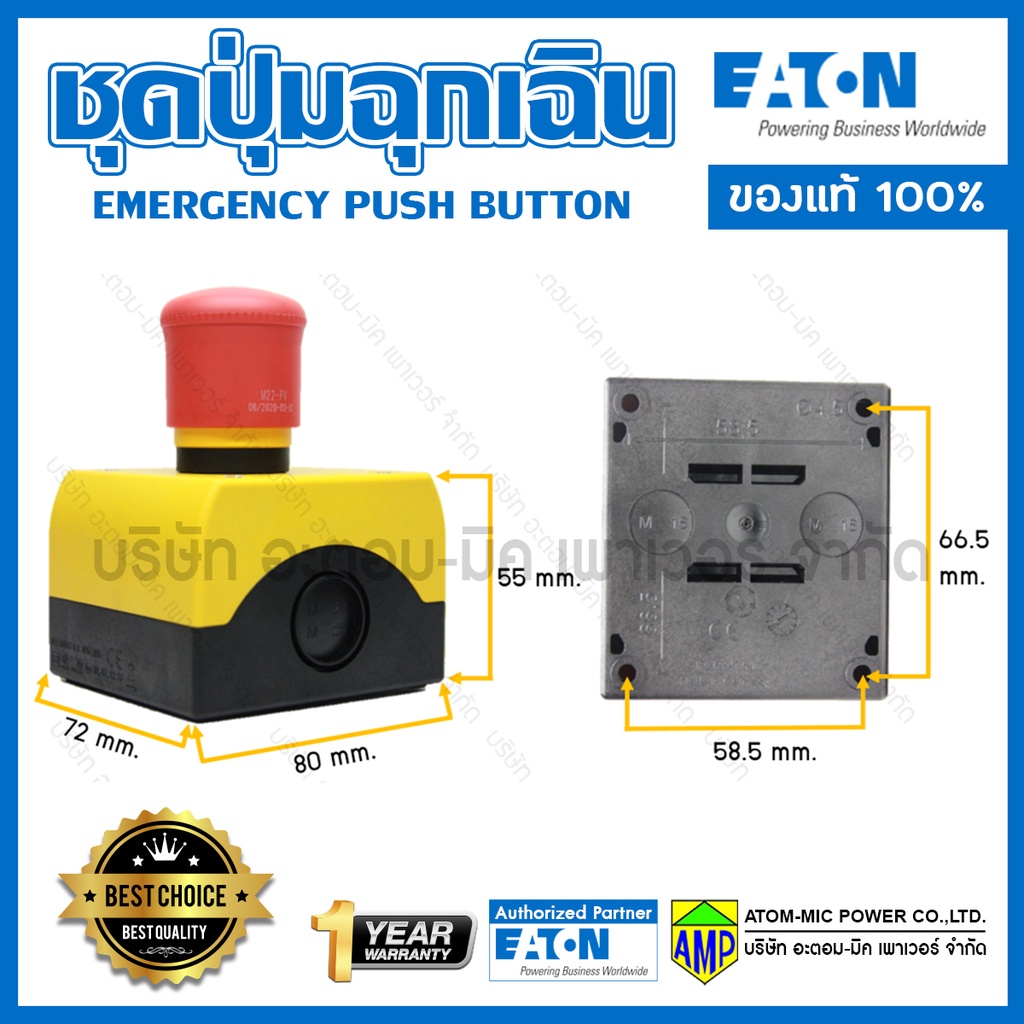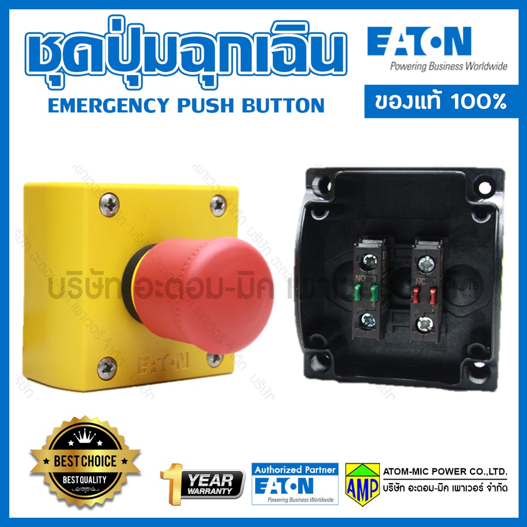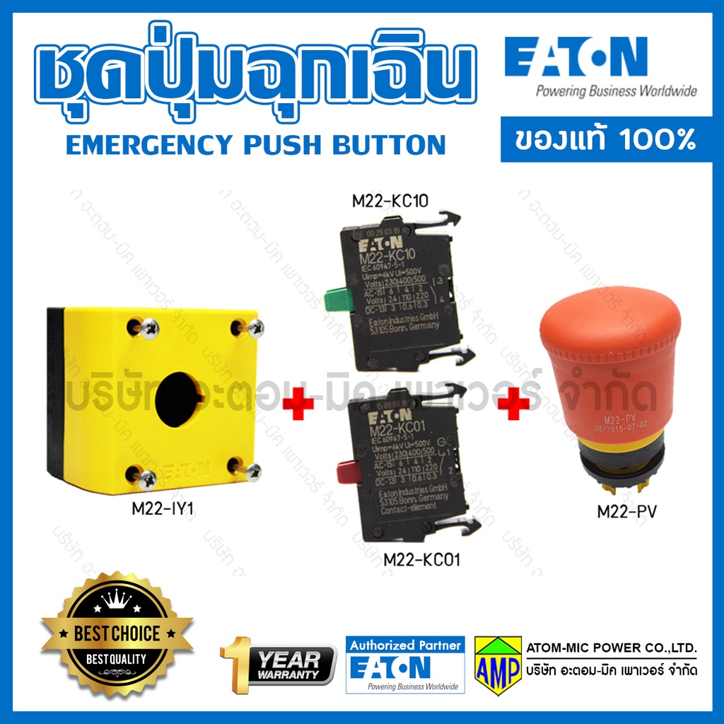EATON Emergency Box 1NO/1NC สวิตช์ปุ่มกดฉุกเฉิน ติดตั้งบนกล่องเหลืองดำ M22-PV/KCxx/IY