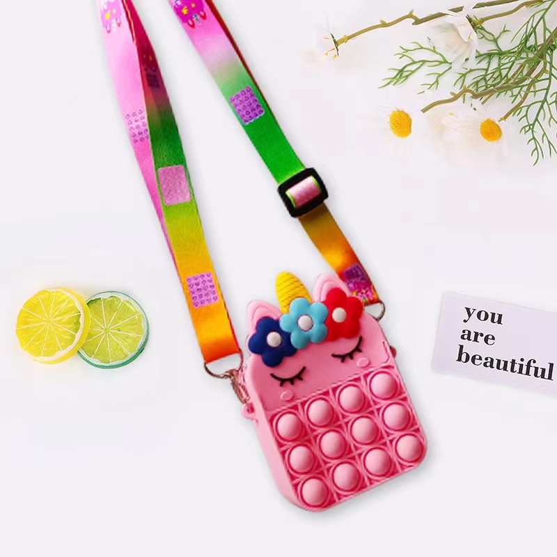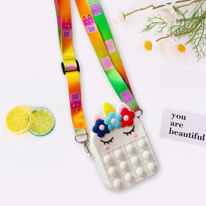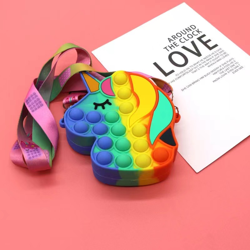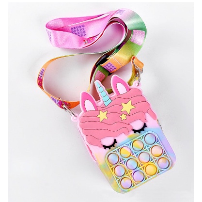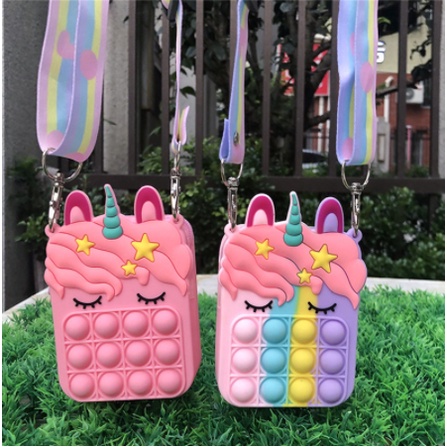 (พร้อมส่ง)Pop it กระเป๋าสะพายไหล่ Push Bubble Sensory Fidget ปลดปล่อยความเครียดของเล่น Crossbody Bag กระเป๋ายูนิคอร์น