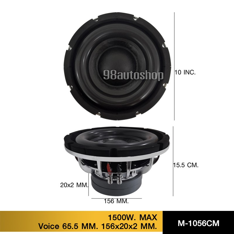 98autoshopลำโพงซับวูฟเฟอร์ 10นิ้ว โครงเหล็กหล่อ ชุปเงา วอยซ์คู่65มิล 156mm*20/2ชั้น เบสแน่นลอย มีให้เหลือก