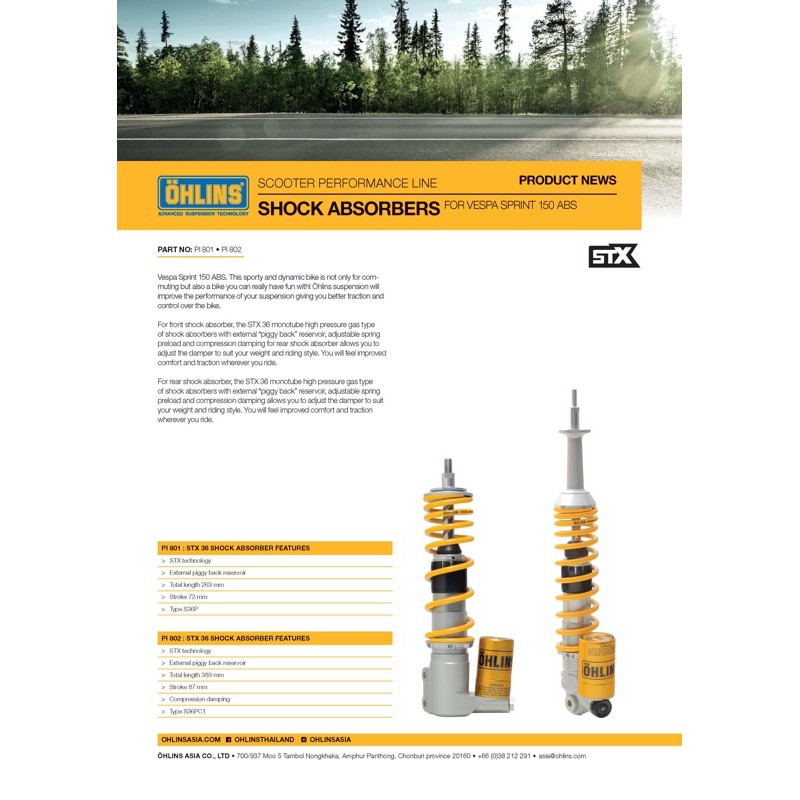 โช๊คหลัง Ohlins รุ่น Vespa Sprint/Prima ABS (PI802) ของแท้100%