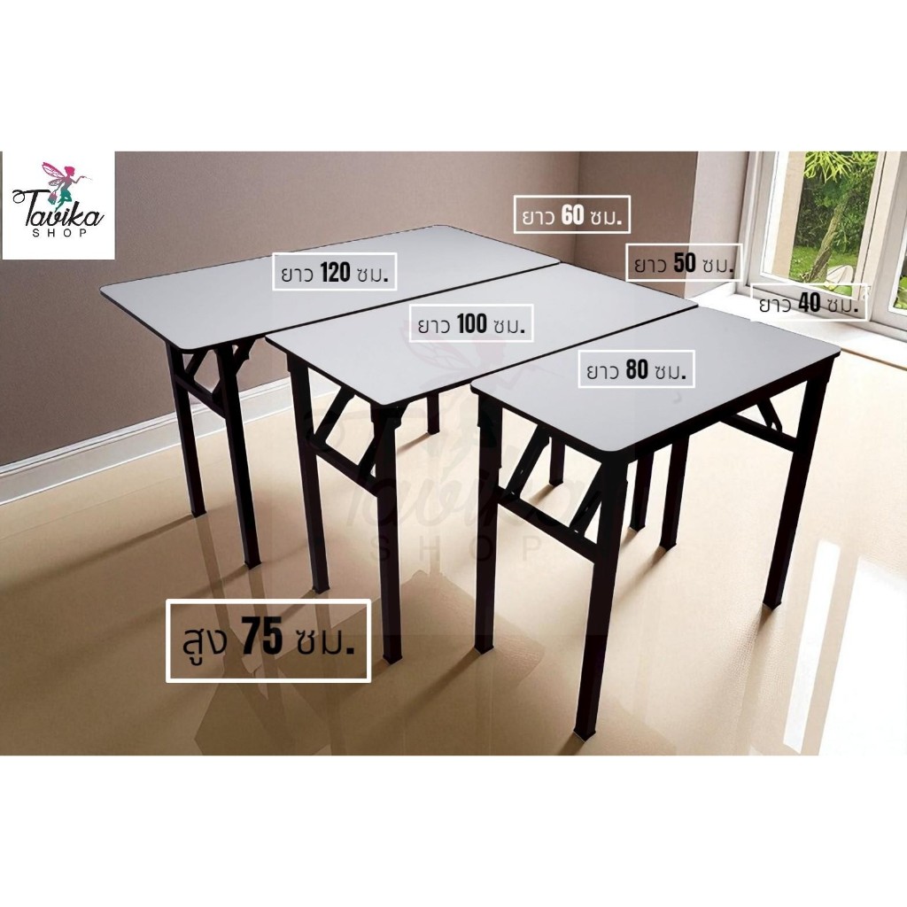 ((สินค้าผลิตในไทย))โต๊ะพับ หน้าขาวล้วน สไตล์มินิมอล โต๊ะทำงาน โต๊ะอเนกประสงค์ เหล็กหนา ไม่ต้องประกอบเอง