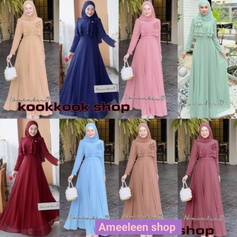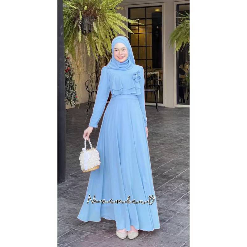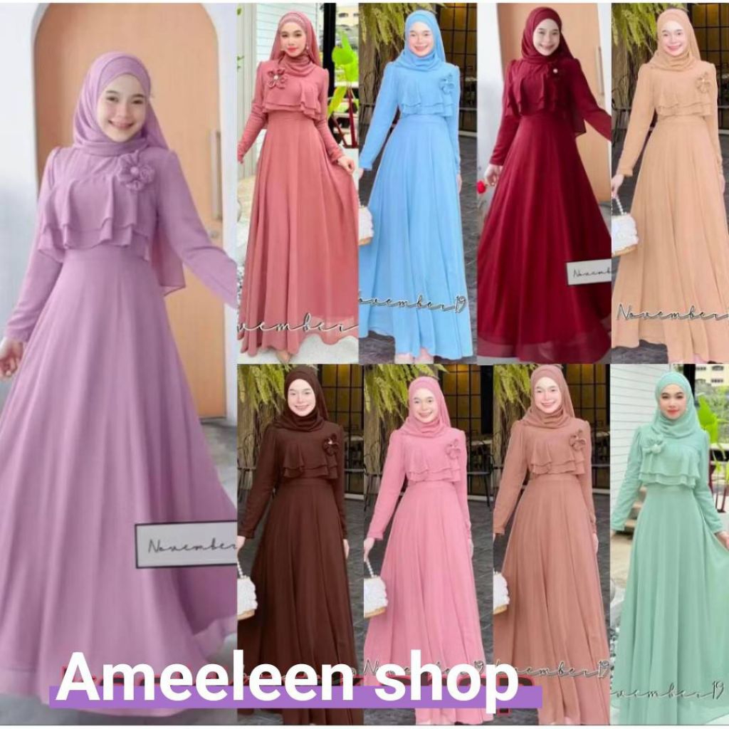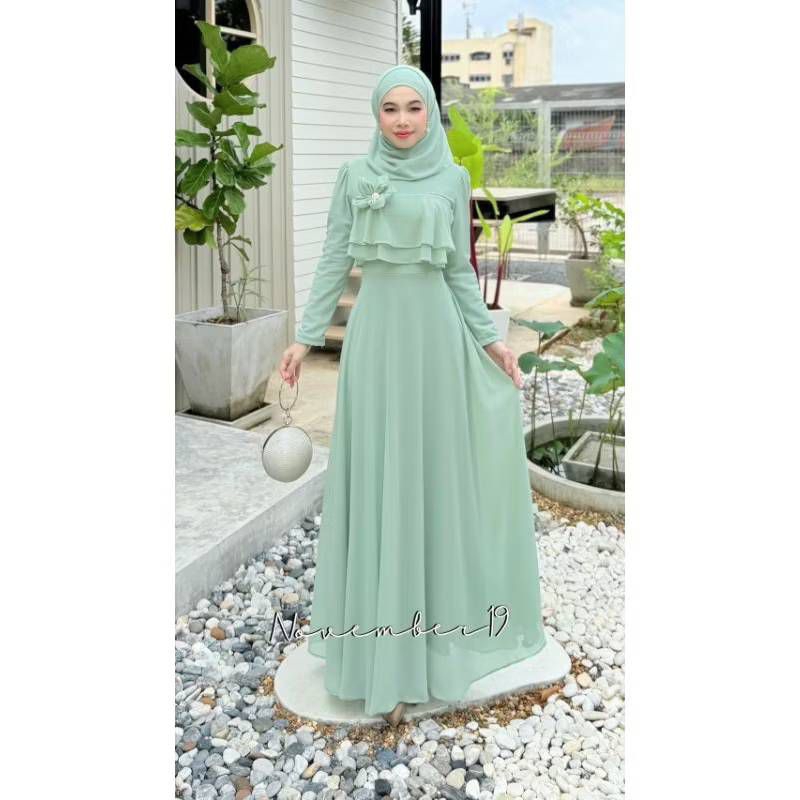 มีอก34-48✅✅ ชุดเดรสอิสลาม ชุดเดรสมุสลิม ซันนี่ชีฟอง 01