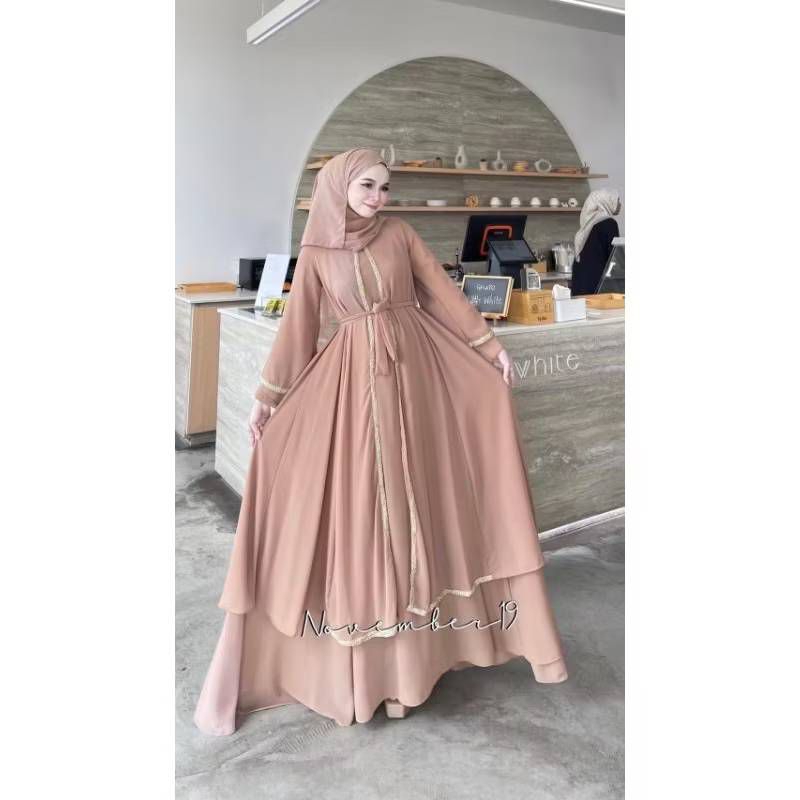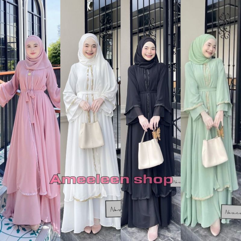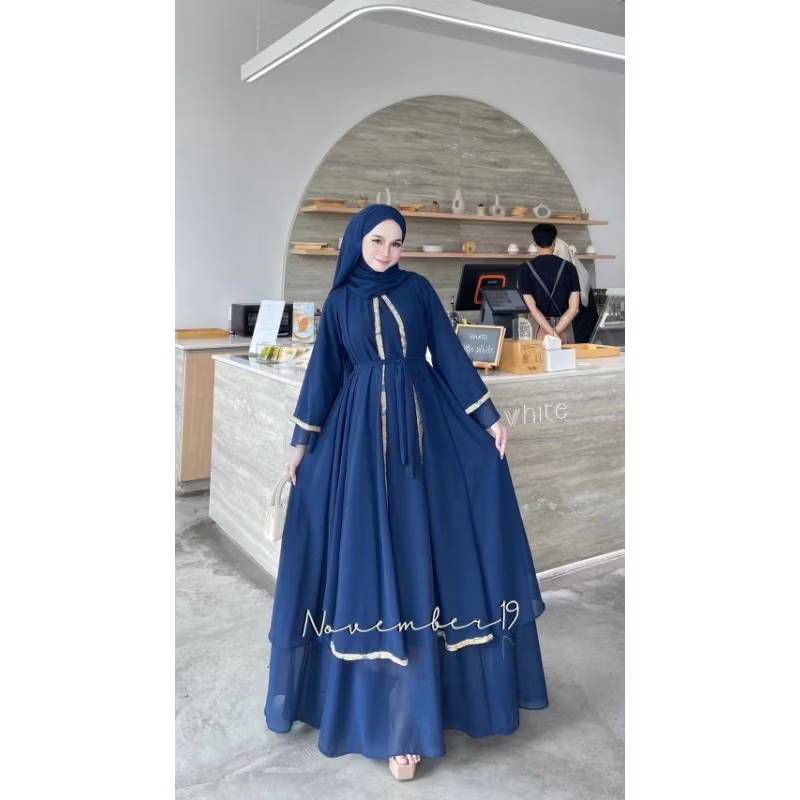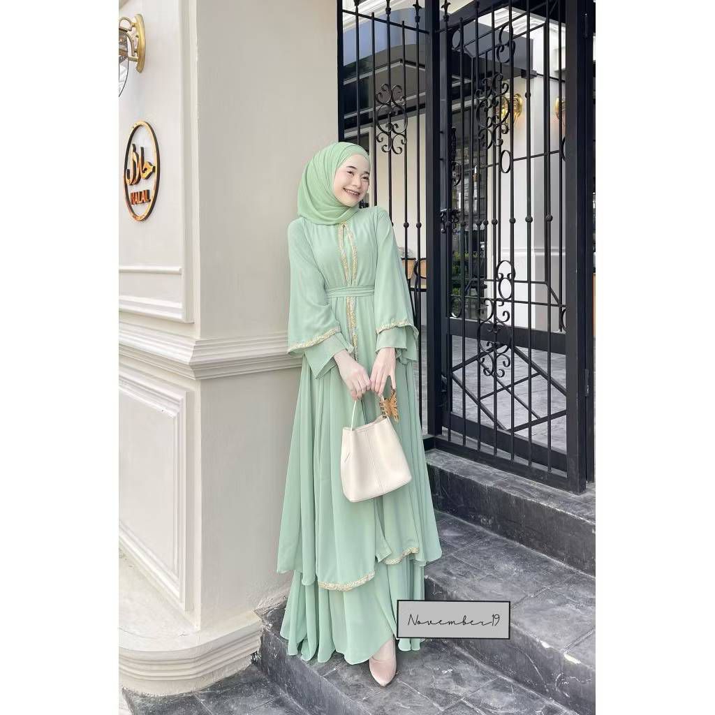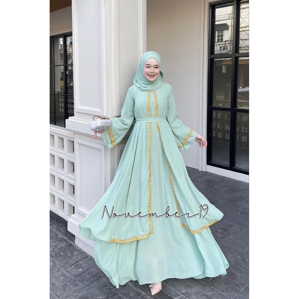 มีอก34-50 ชุดเดรสอิสลาม ชุดเดรสมุสลิม ชีฟองดูไบ 01ฮาบีบี