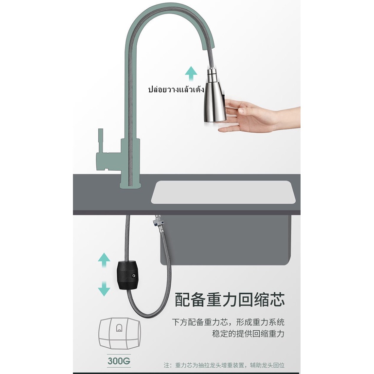 ก๊อกอ่างน้ำร้อนน้ำเย็นแบบดึงออก ก๊อกผสมสายยาง