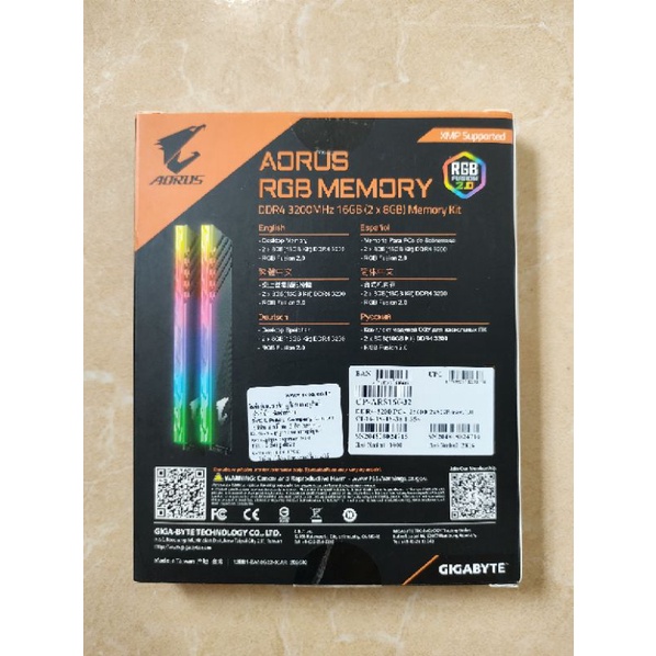 GIGABYTE AORUS RGB 16GB (8GBx2) DDR4/3200 RAM PC