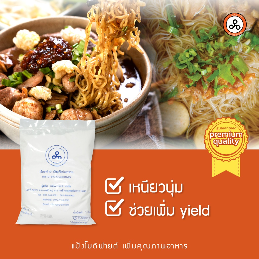 TYPA แป้งโมดิฟายด์ MR-101P แป้งทำเส้นก๋วยเตี๋ยว เส้นใหญ่ เส้นเล็ก หมี่ขาว เหนียวนุ่ม ใส 1 กิโลกรัม