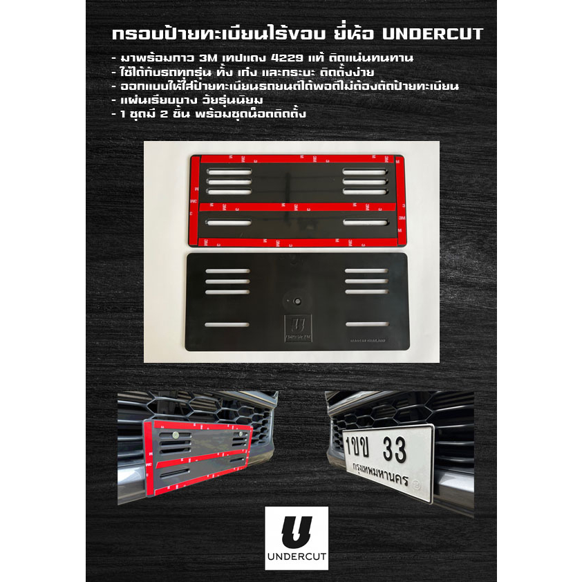 🔥มาใหม่🔥กรอบป้ายทะเบียน พลาสติก ไร้ขอบ พร้อมกาว 3M แท้ 1ชุด มี 2ชิ้น UNDERCUT