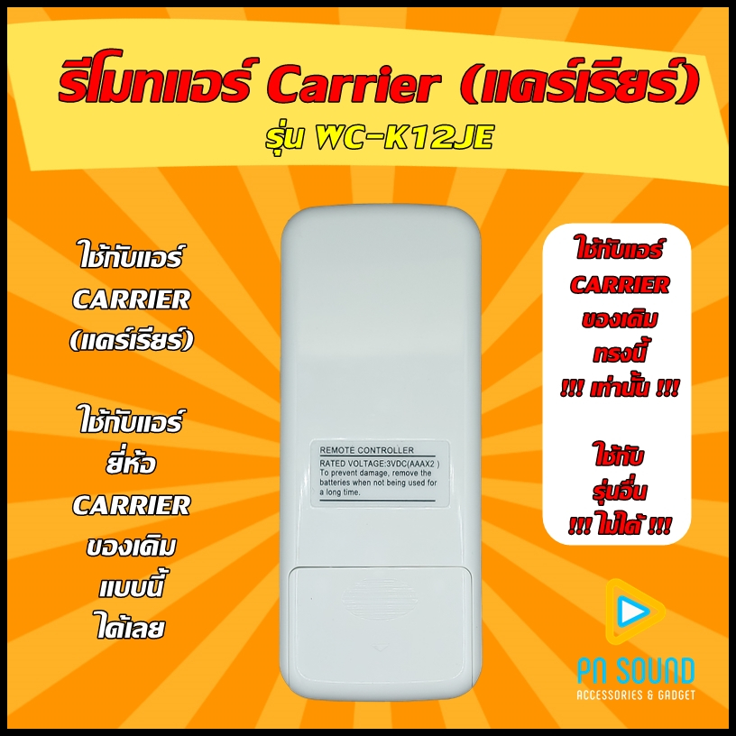(มีส่งด่วน) รีโมทแอร์ ใช้สำหรับแอร์ CARRIER รุ่น WC-K12JE ใช้แทนของเดิมรุ่นนี้ได้เลย