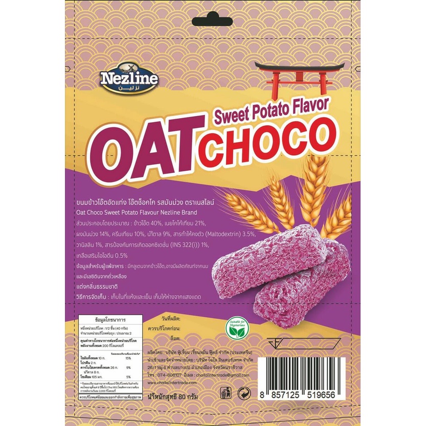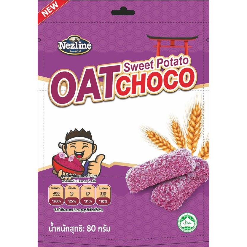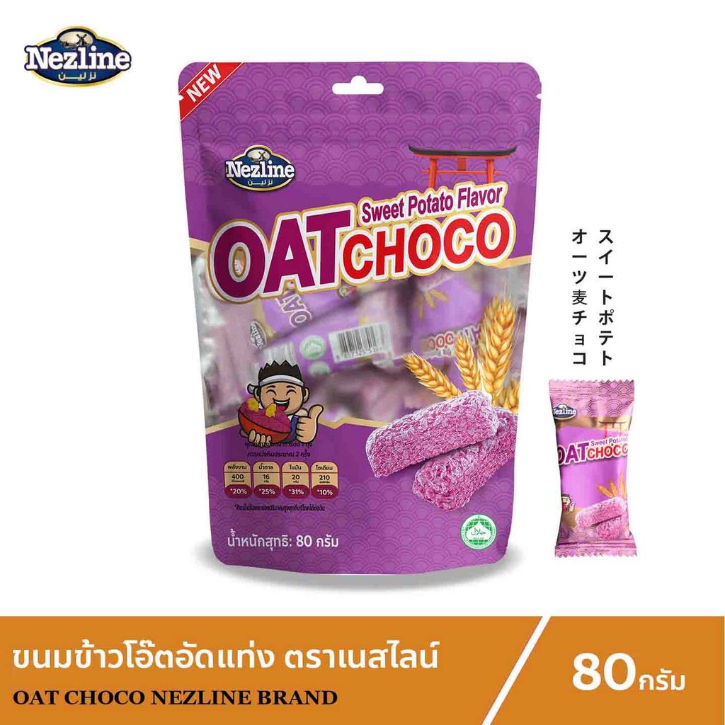 Nezline Oat Choco Sweet Potato ขนมข้าวโอ๊ตอัดแท่ง รสมันม่วง ขนาด 80 กรัม