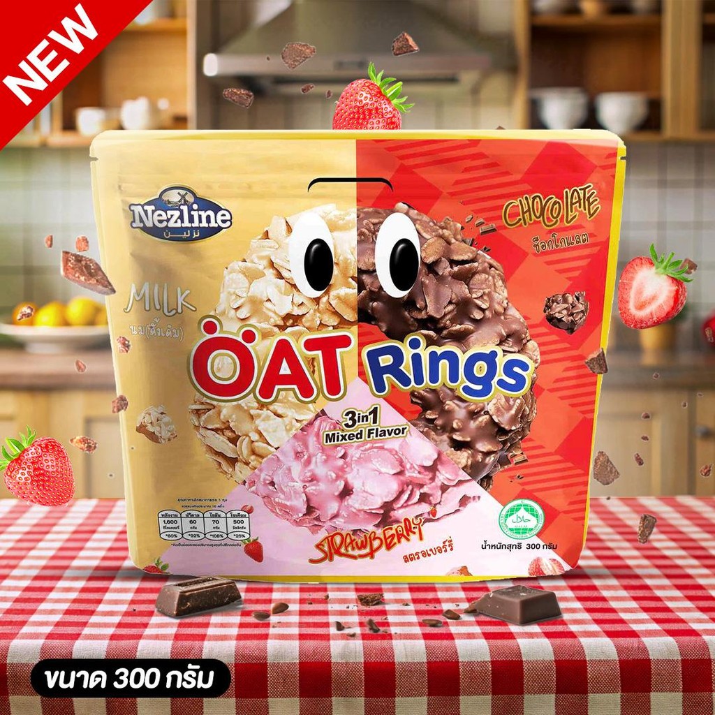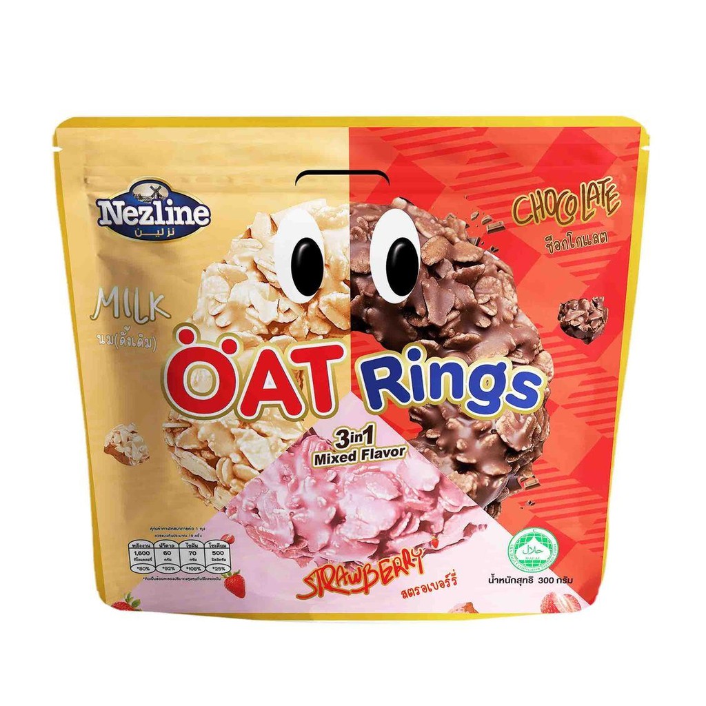 ใหม่! โอ๊ตริง Nezline โอ๊ตริง 3in1 ขนาด 300 กรัม ข้าวโอ๊ตแท้เคลือบช็อกโกแลต นม และ สตรอว์เบอร์รี่ คละ 3 รสในห่อเดียว