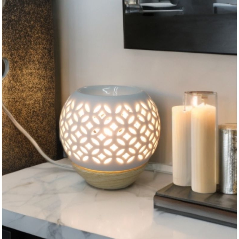 เตาน้ำมันหอมไฟฟ้า ขาวโปร่งลายฉลุขนาด,M❣️❣️เเถม หลอดไฟ 1 อัน❣️❣️