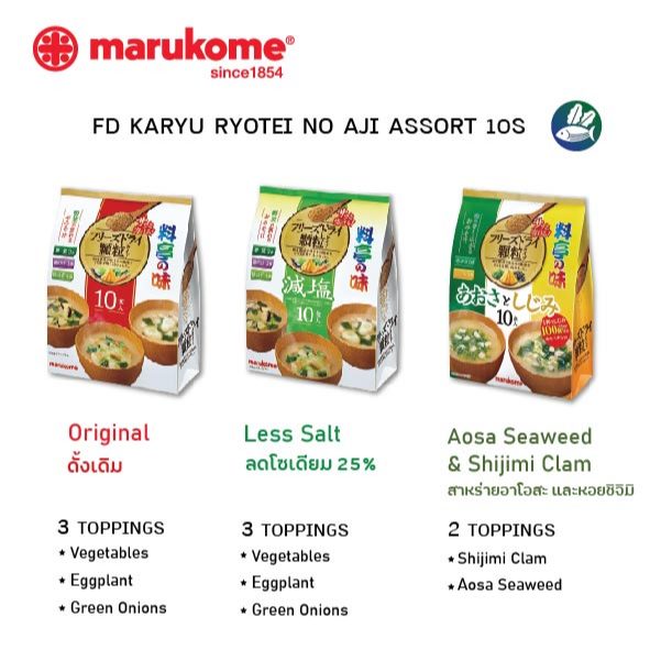 MARUKOME FD GRANULE RYOTEI NO AJI MISO SOUP ASSORT 10S ซุปมิโซะกึ่งสำเร็จรูปฟรีซดราย (10เสิร์ฟ/แพ็ค)