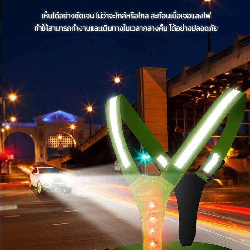 NEOBEE เสื้อกั๊กสะท้อนแสง พร้อมไฟกระพริบ ฟรีไซส์ วิ่งกลางคืน ตกปลา ก่อสร้าง ตำรวจจราจร กู้ภัย LA2026