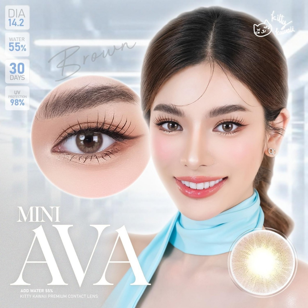 คอนแทคเลนส์ขนาดมินิ Mini Ava Brown / Gray (Kitty Kawaii) ลายสุดฮิตในเกาหลี❤️