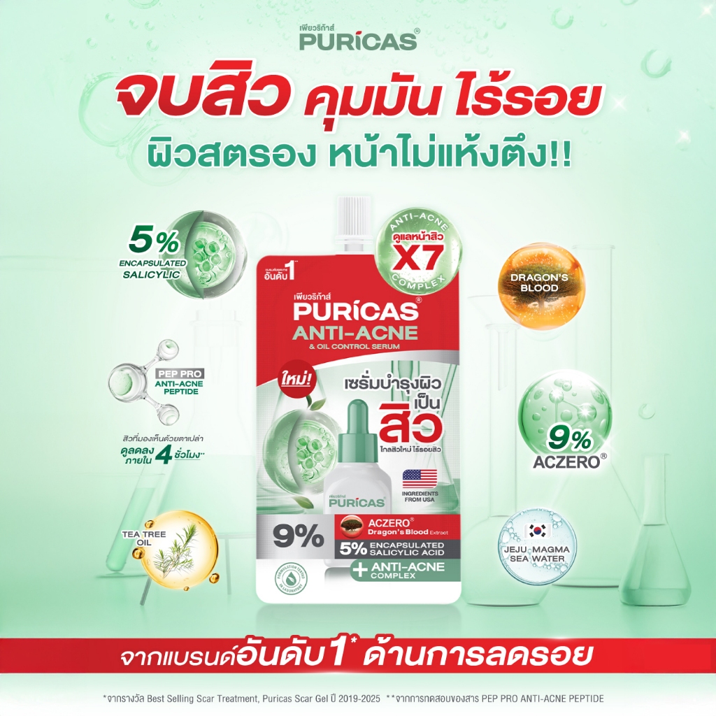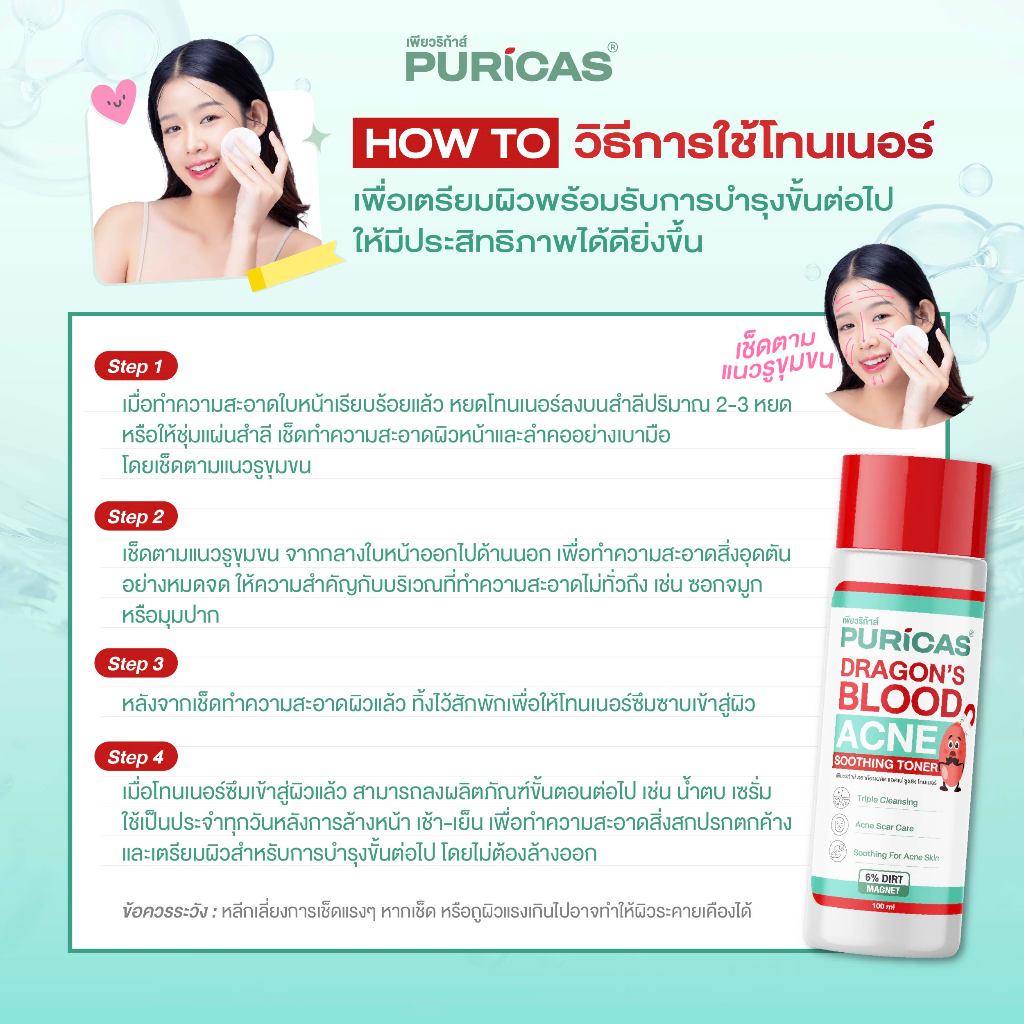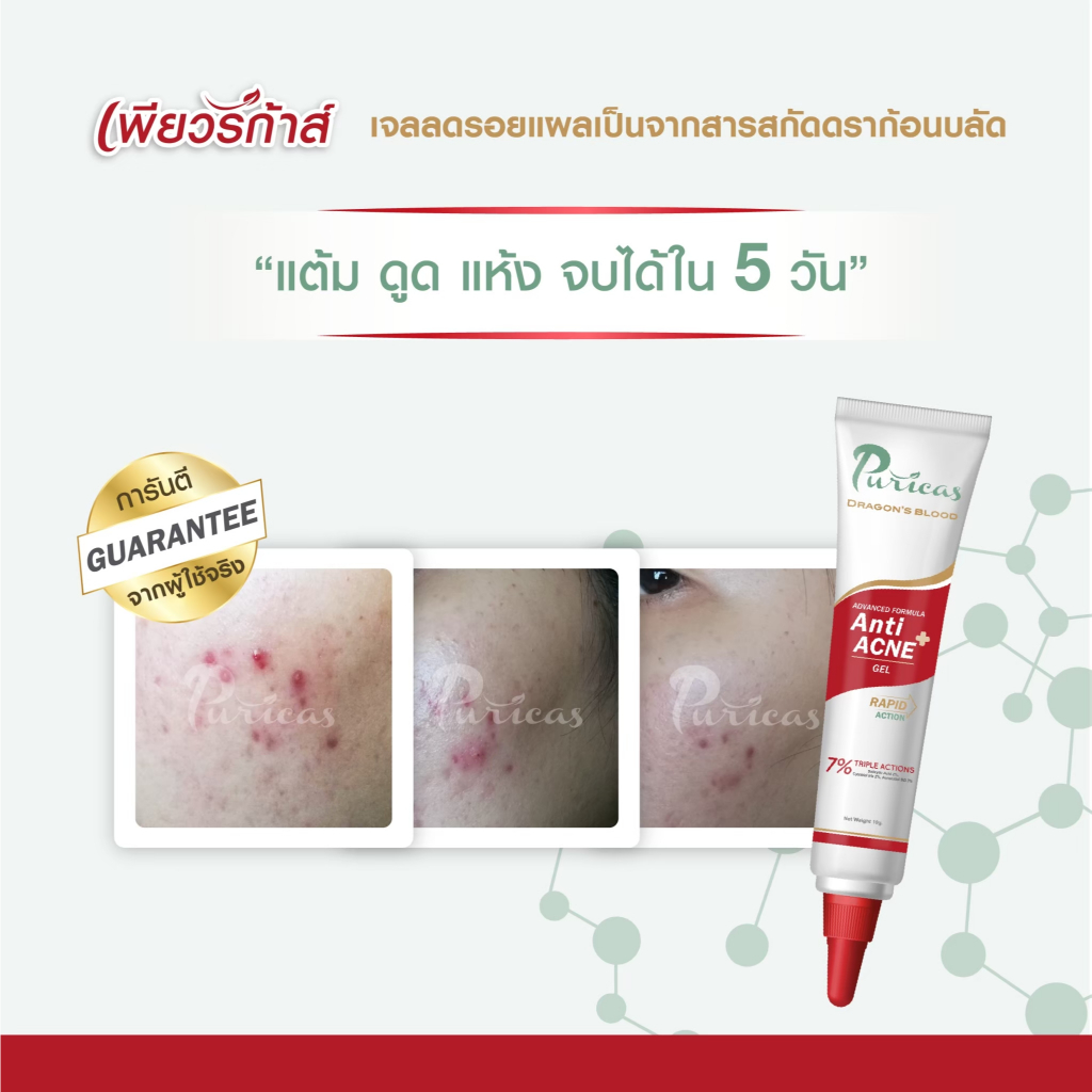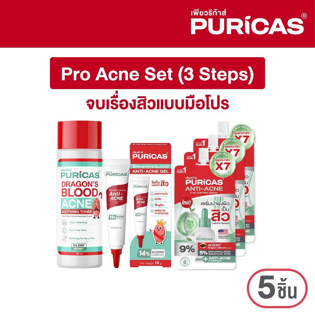 [เซ็ต Pro Acne 3Steps] Puricas Dragon's Blood Acne Soothing Toner 100ml. + Acne gel 10g.+ Acne Serum 7ml.x3
