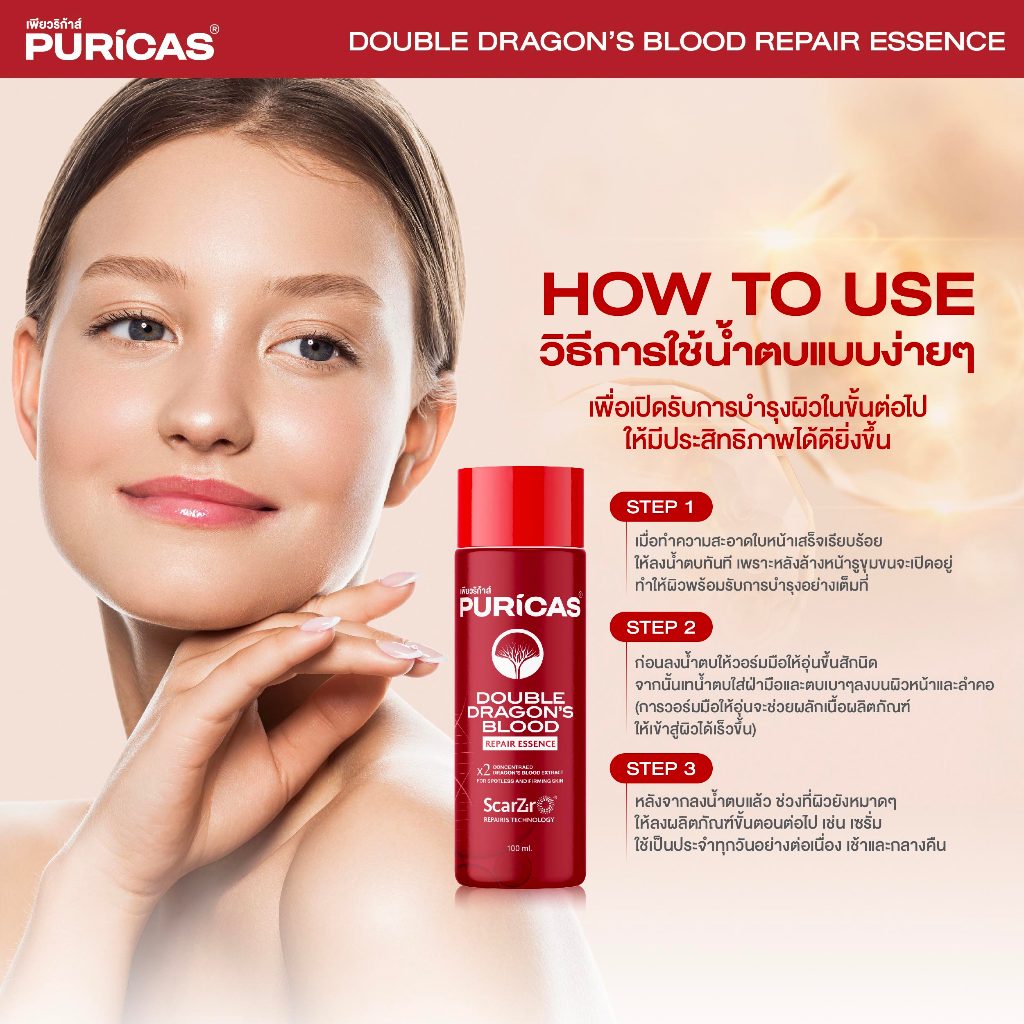 Puricas Double Dragon's Blood Repair Essence 100ml. น้ำตบซ่อมผิวเสีย เติมความ ชุ่มชื้น