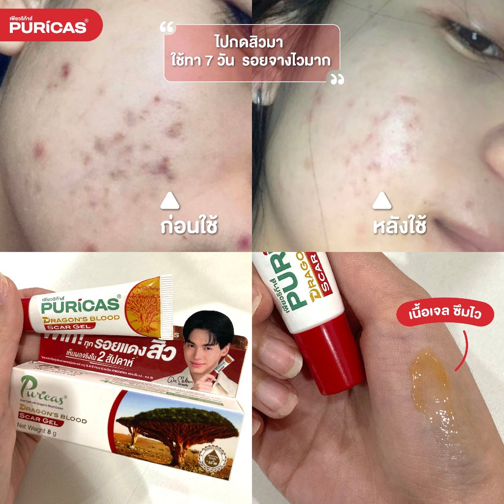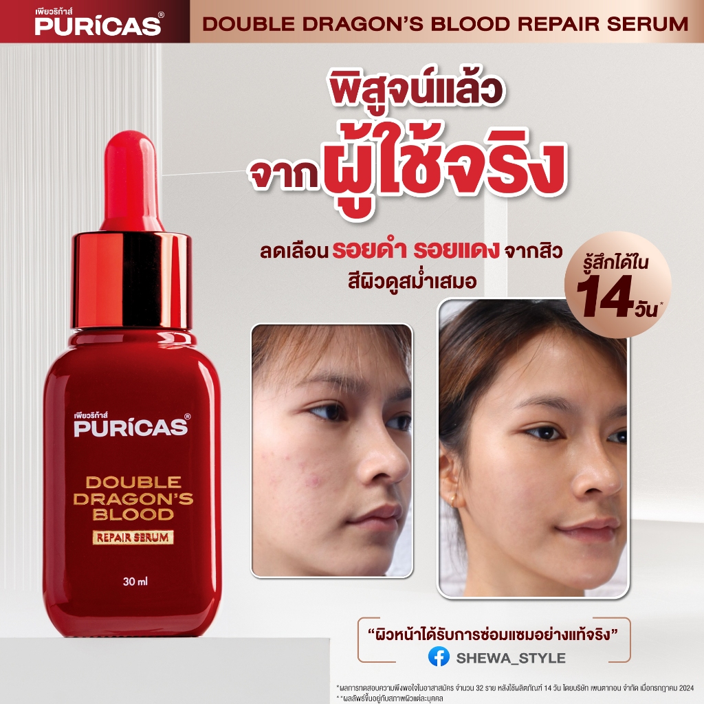 Puricas Double Dragon's Blood Repair Serum 30ml.+Scar gel 8g.+ Moisturizing Gel Cream 40g.